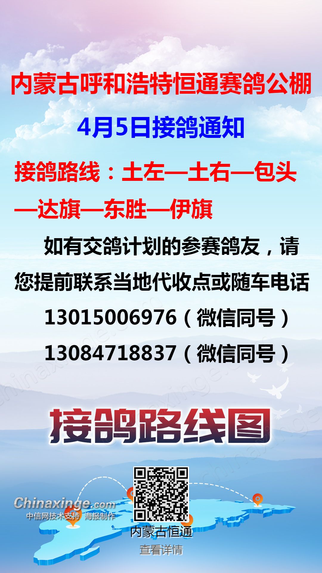 恒通赛鸽公棚4月5日临河、乌海方向接鸽通知