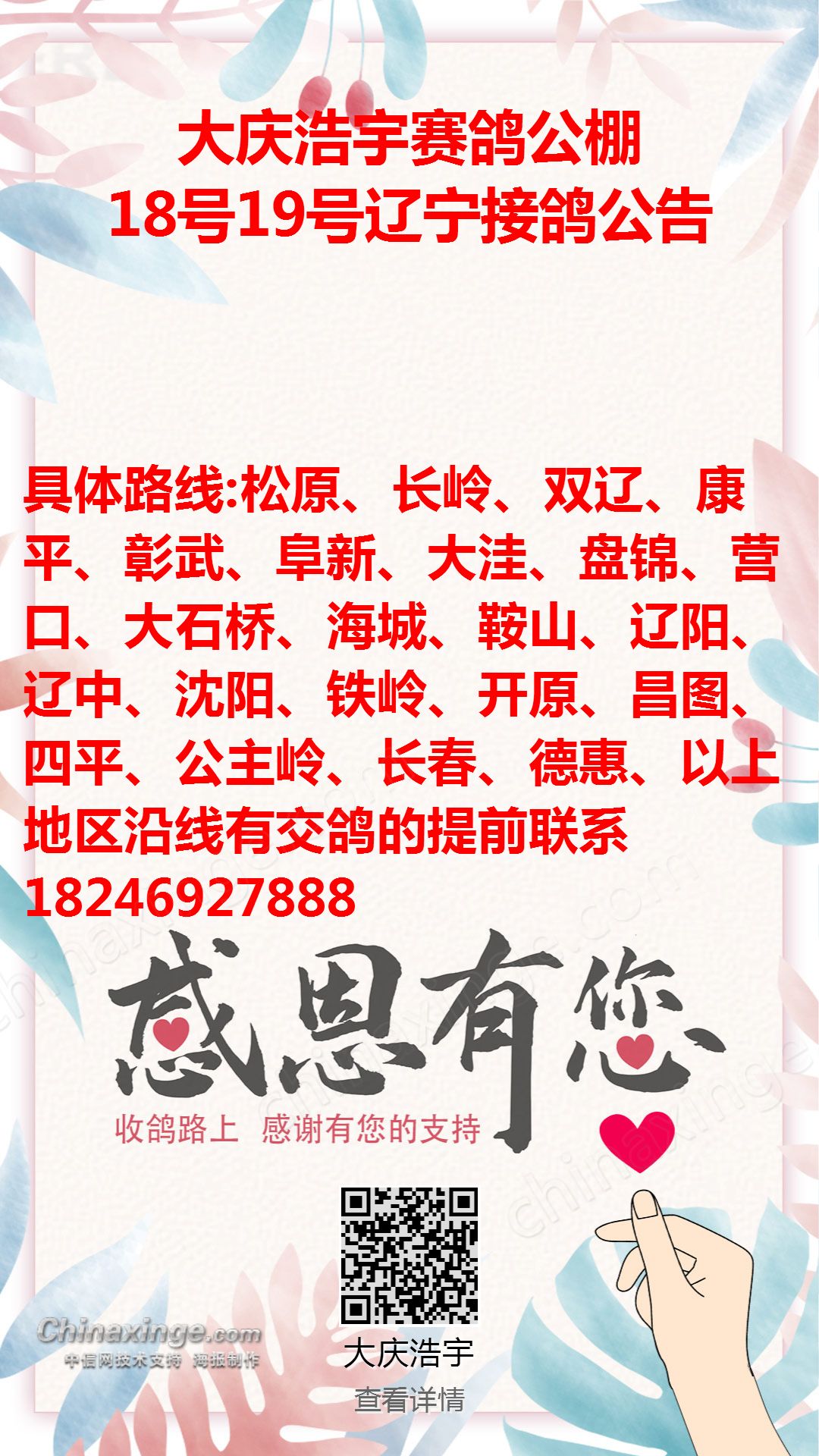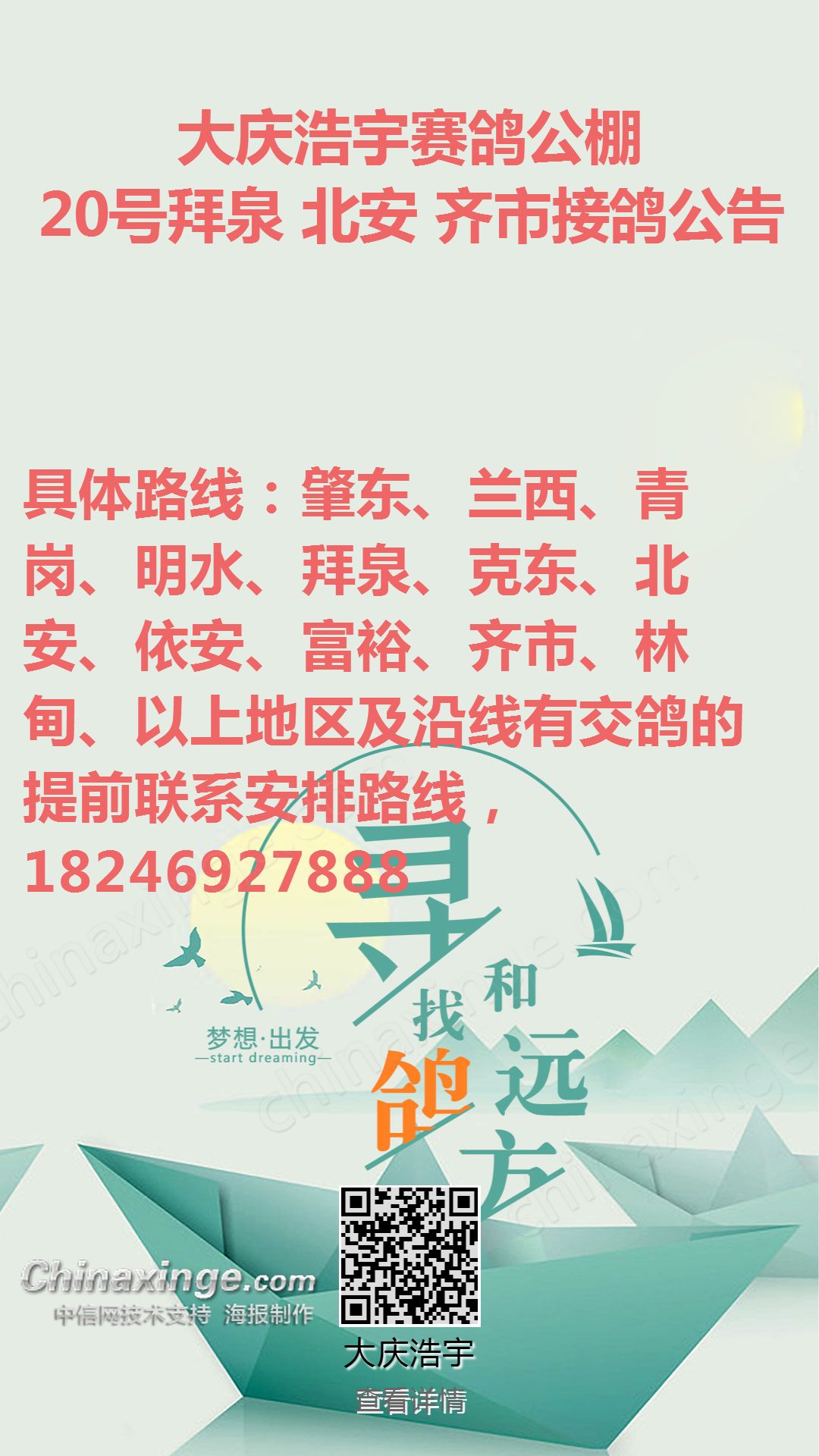 大庆浩宇公棚18号接鸽路线