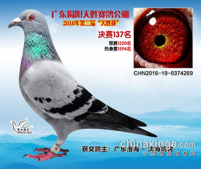 2016揭阳天胜公棚决赛131-145名获奖鸽图片