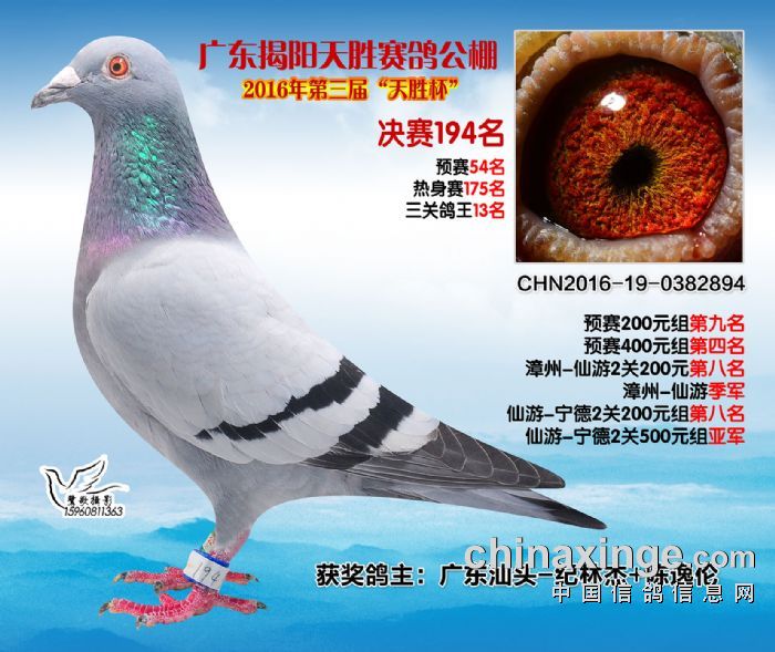 2016揭阳天胜公棚决赛191-200名获奖鸽图片