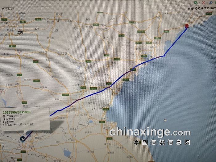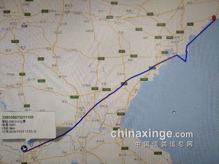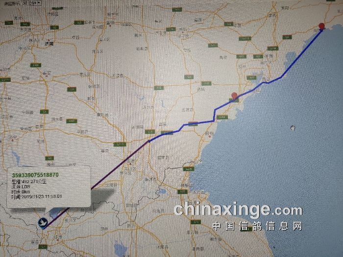 江苏翔圣:第四关海翔GPS赛鸽归巢路线图及赛鸽照片
