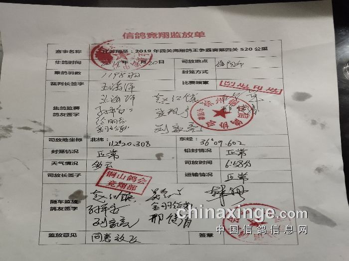 江苏翔圣:2020年第五届获奖鸽拍卖公告