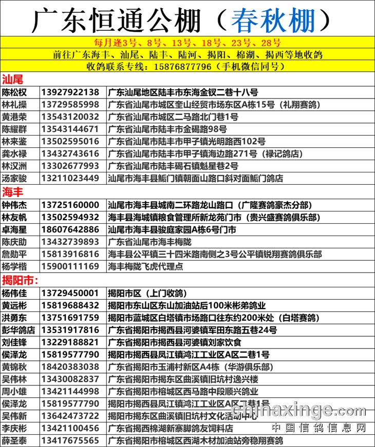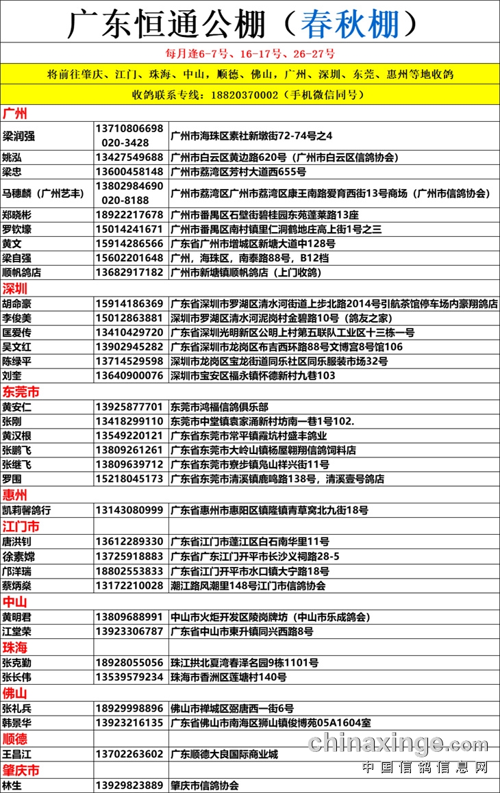 如需送鸽的鸽友请提前与本地代收点及司机联系,谢谢大家支持!