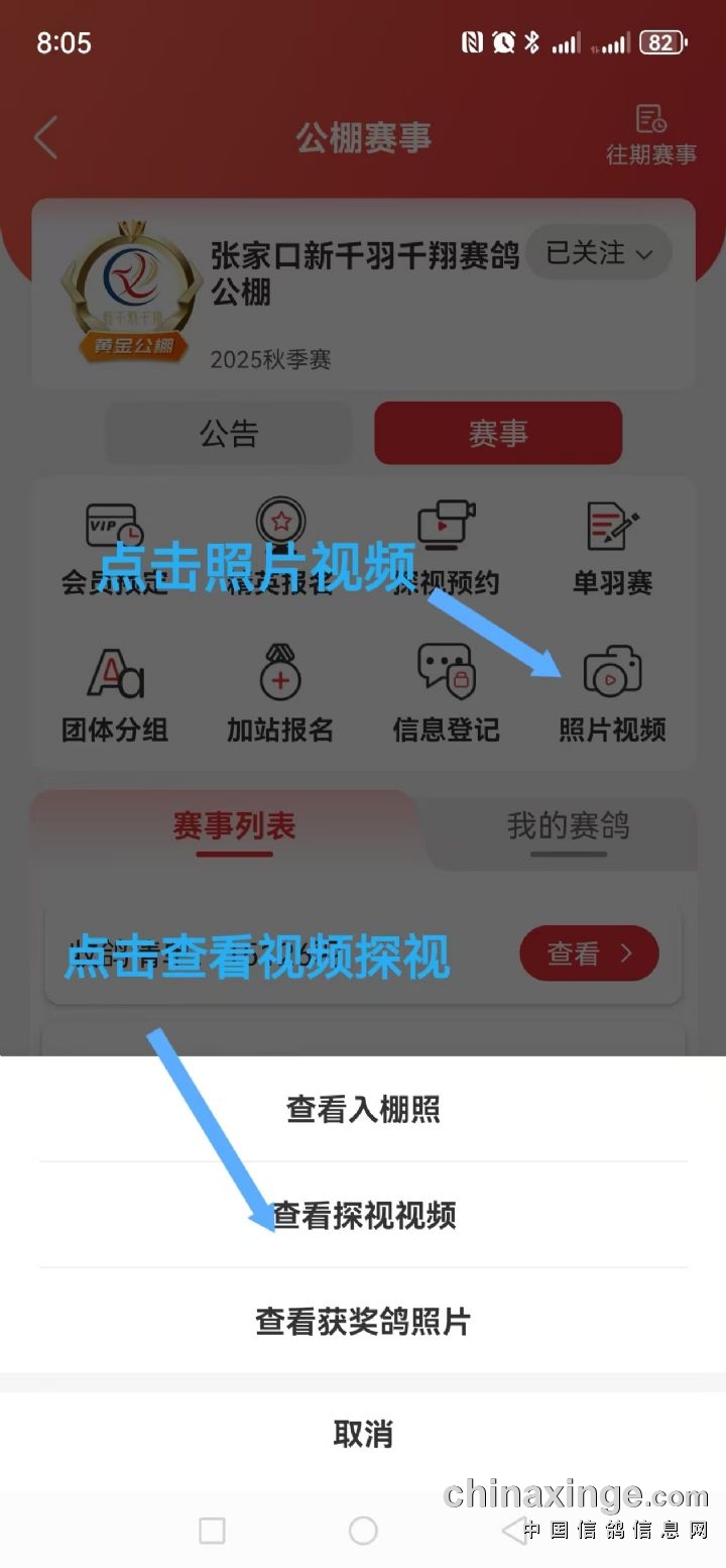 因中信网屏蔽,参赛会员可在我公棚办公微信朋友圈查看探视二维码,也可直接登录软件,输入公棚预留手机号即可查看视频。