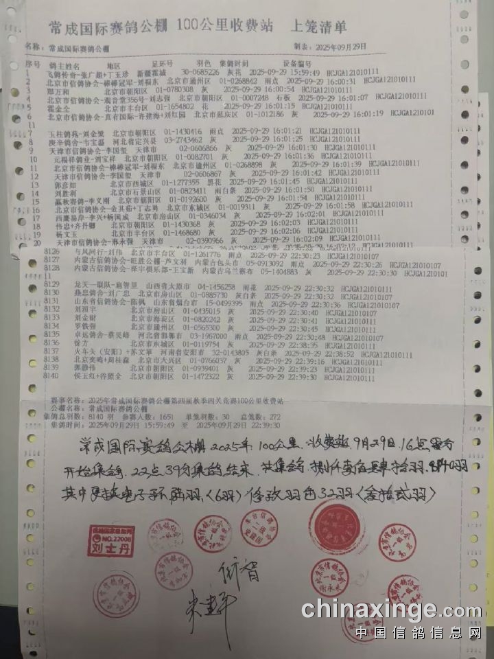常成:100公里收费站集鸽全纪录