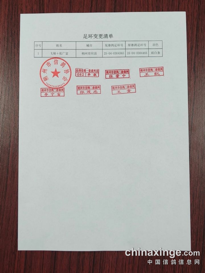 神齐国际赛鸽文化中心(公棚)资格赛羽色变更清单