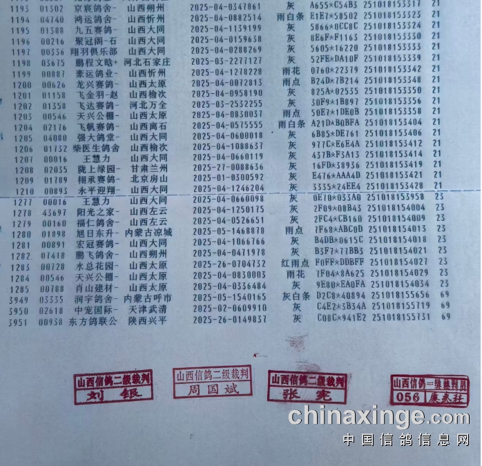 左云盛世腾飞公棚400公里预赛集鸽修改信息名单