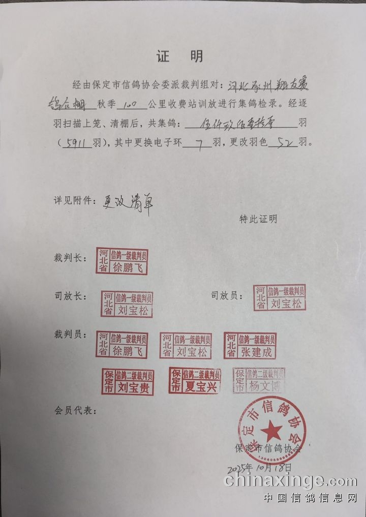 涿州翔友国际赛鸽公棚100公里收费站更改足环号