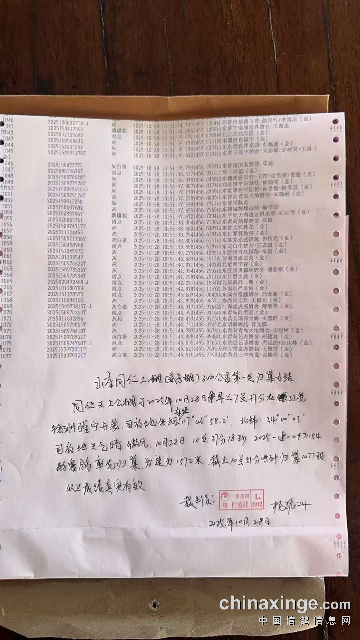 青岛同仁天工25年秋季第一关三日归巢清单(按名次)