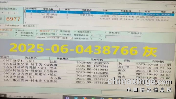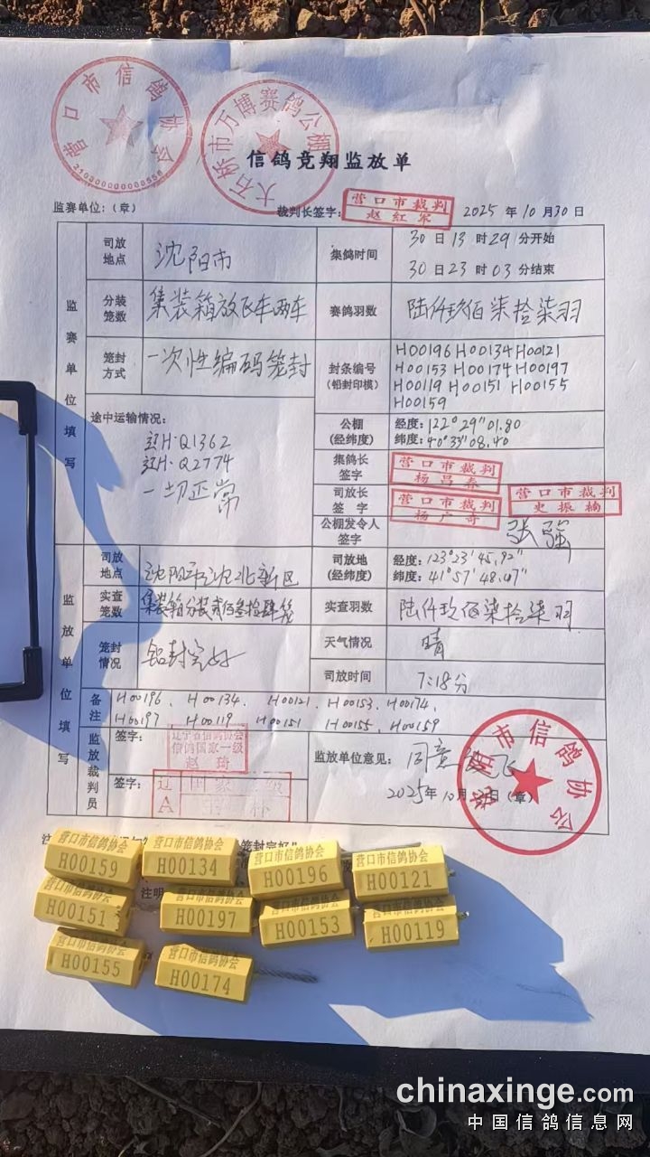 辽宁大石桥万博赛鸽公棚180公里集鸽更换电子环 羽色及受伤鸽名单
