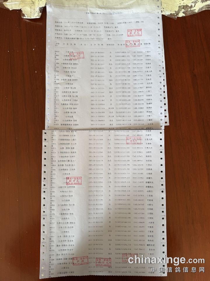 宁夏黄河赛鸽公棚2025年精英赛成绩