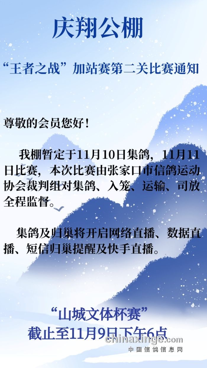 张家口庆翔公棚加站赛第二关比赛通知