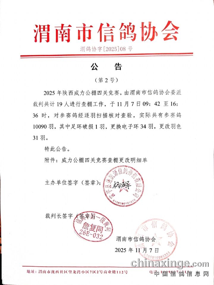渭南市信鸽协会公告