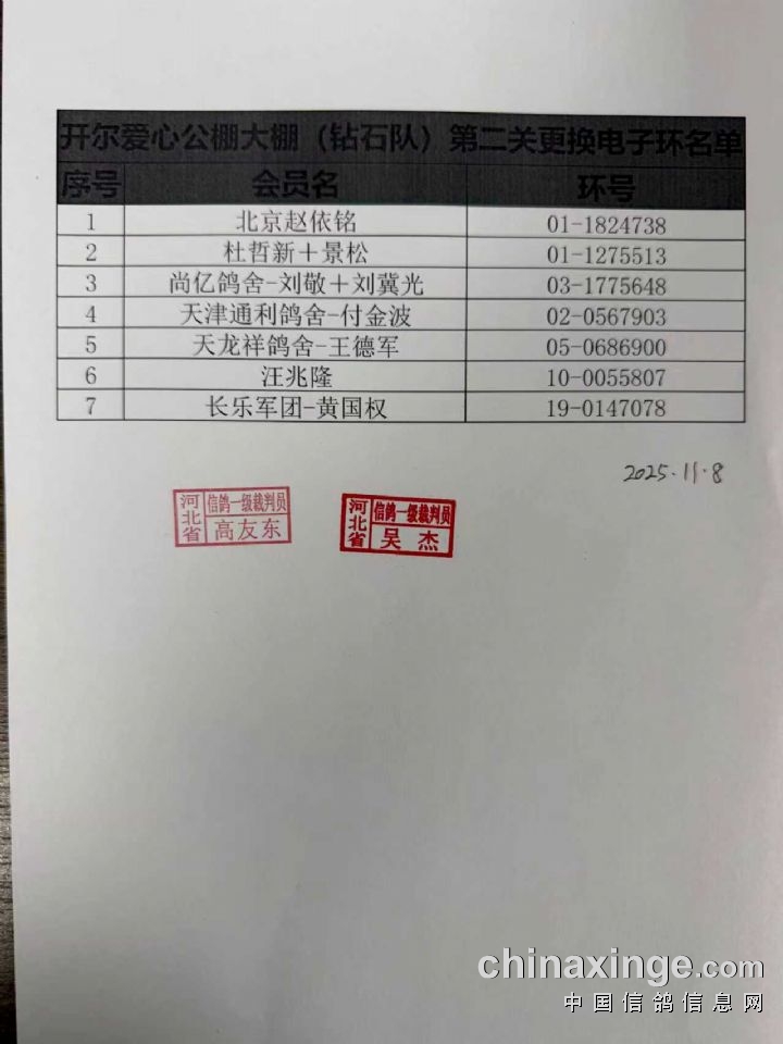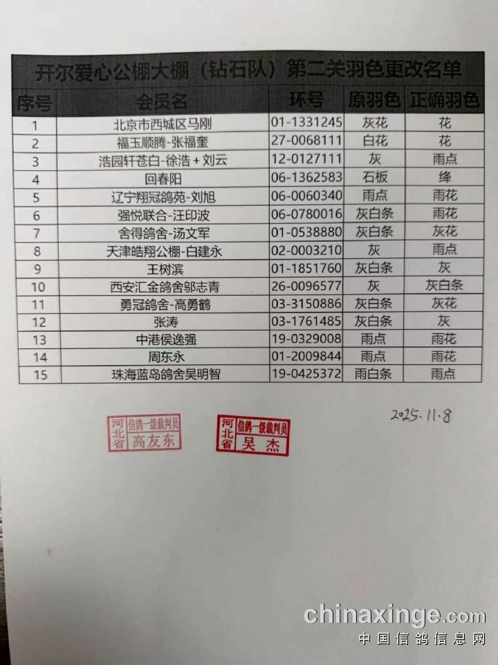 开尔爱心公棚大棚(钻石队)第一关两日归巢清单(按会员)