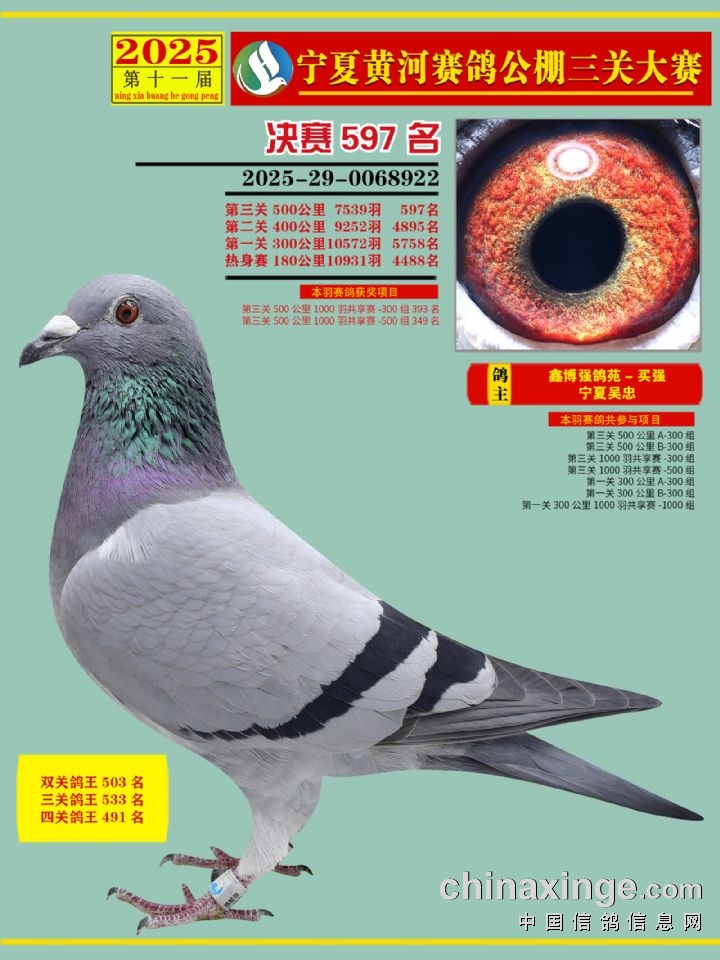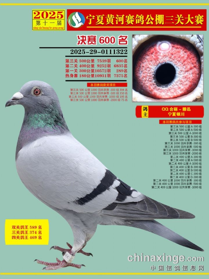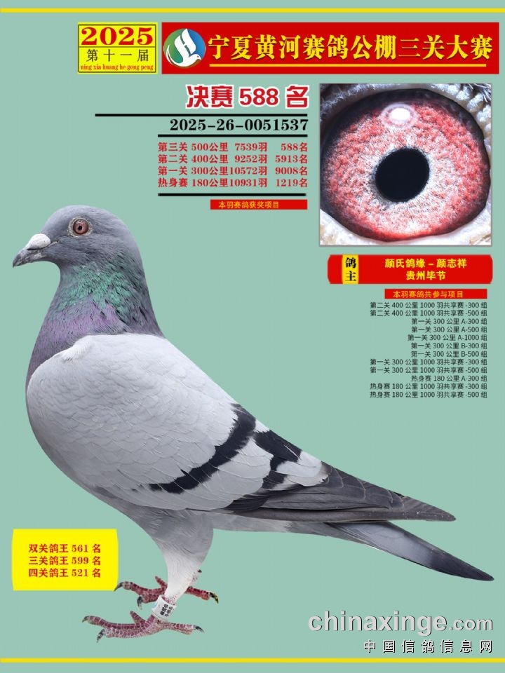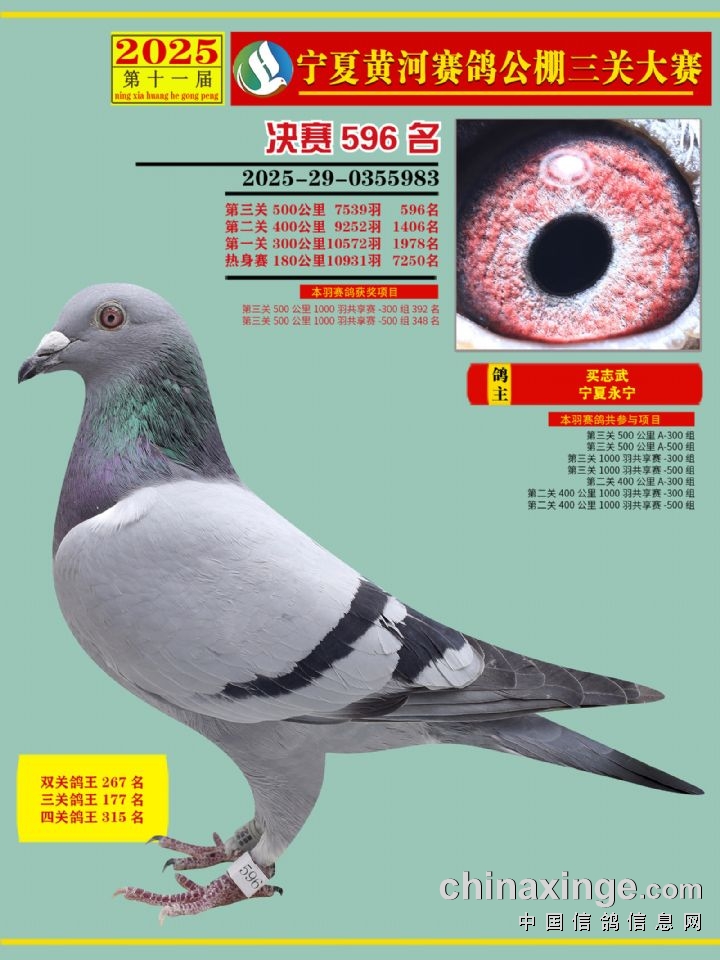 宁夏黄河赛鸽公棚第三关决赛500公里586-600名赏析