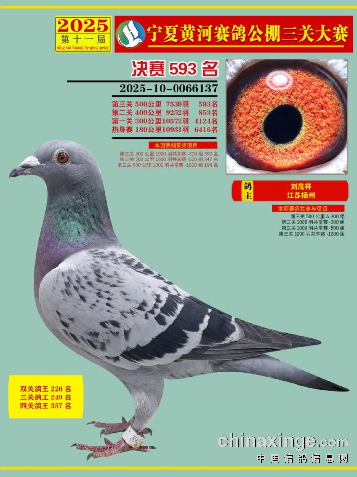 宁夏黄河赛鸽公棚第三关决赛500公里1-15名赏析