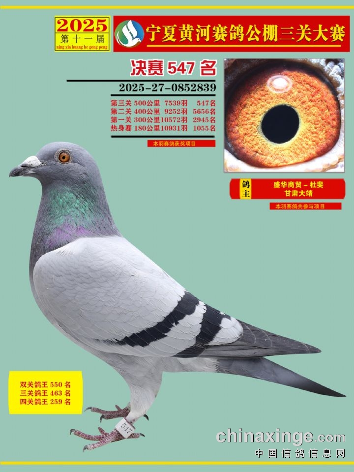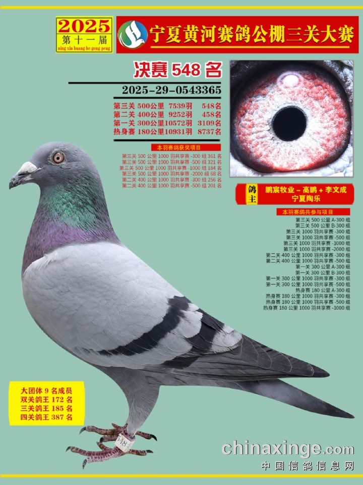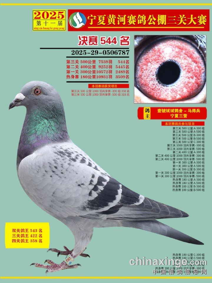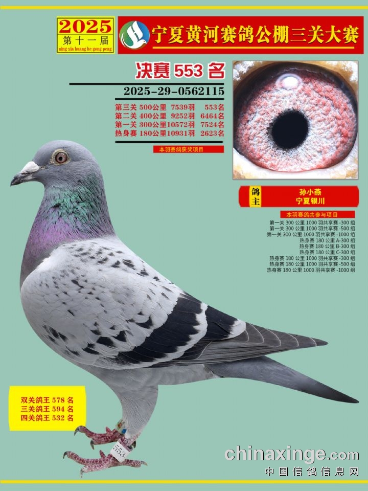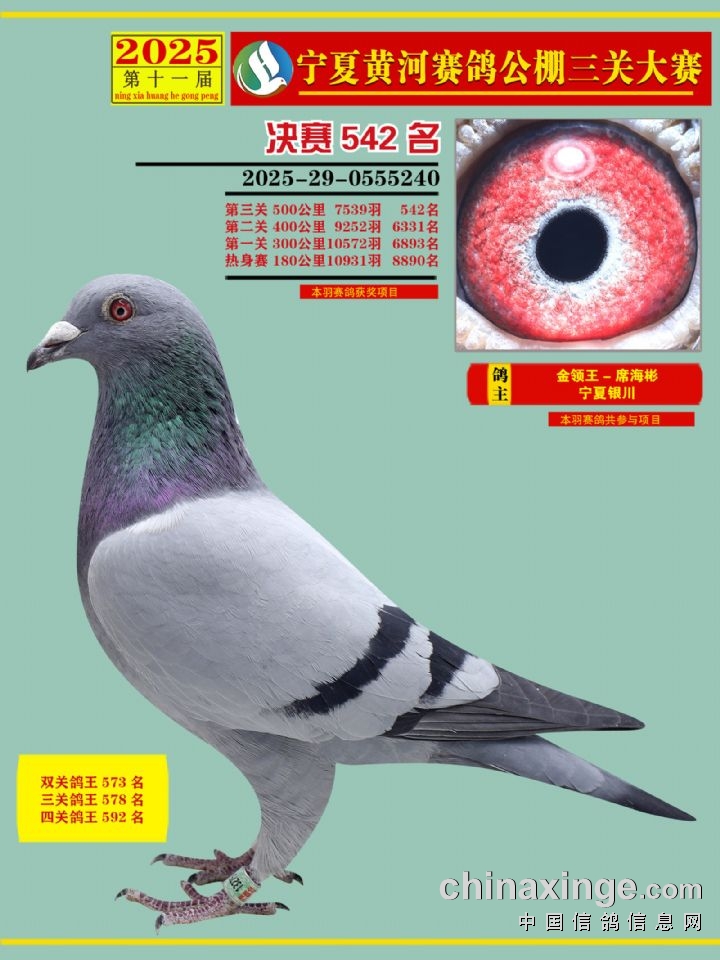 宁夏黄河赛鸽公棚第三关决赛500公里541-555名赏析