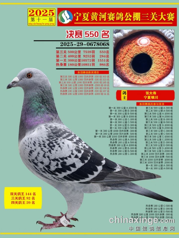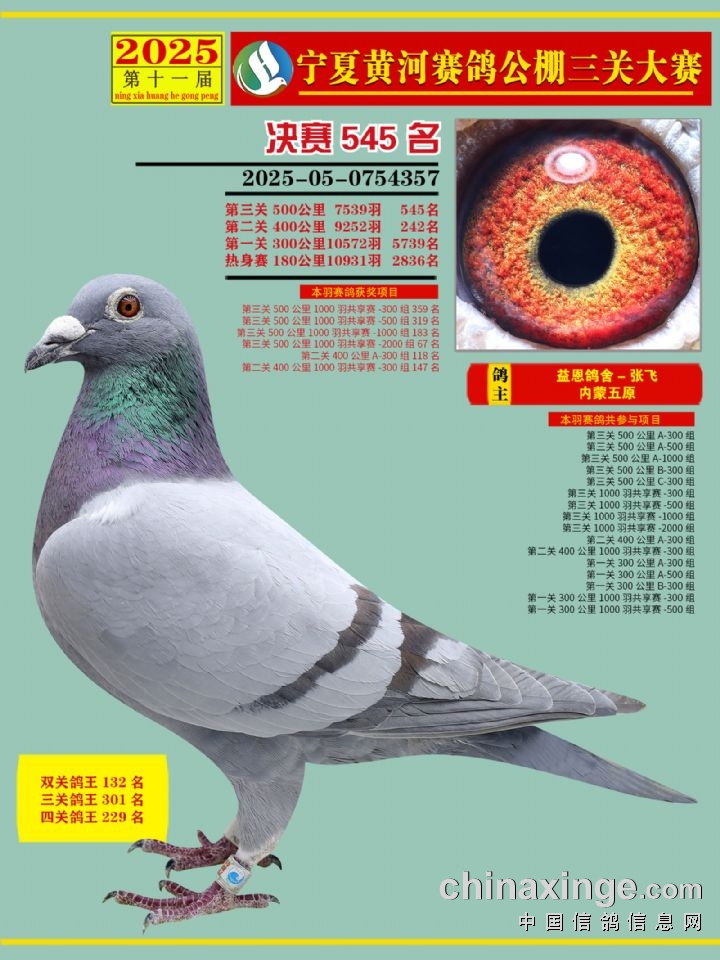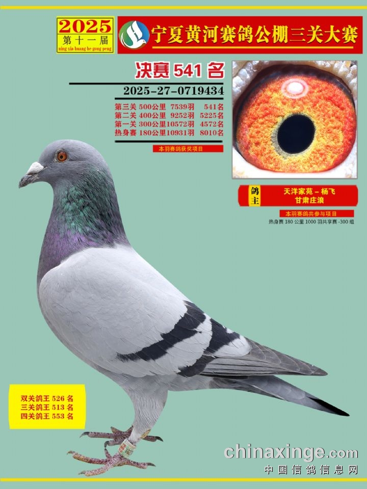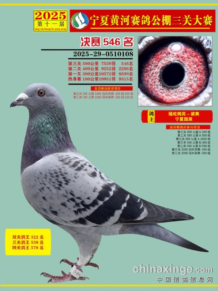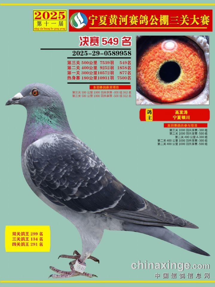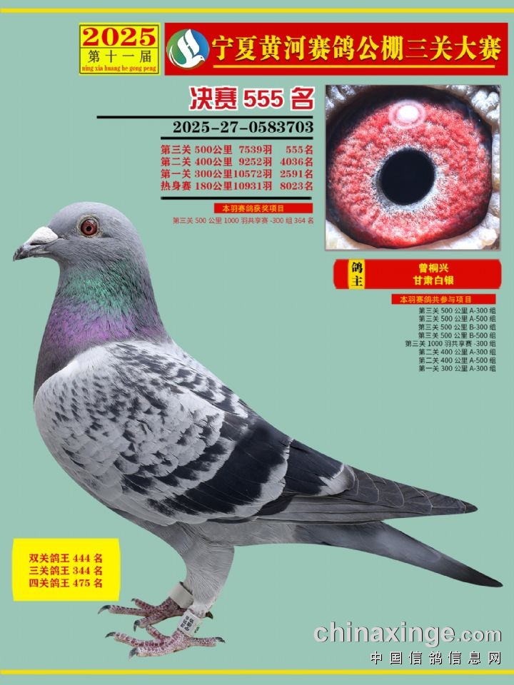 宁夏黄河赛鸽公棚第三关决赛500公里541-555名赏析