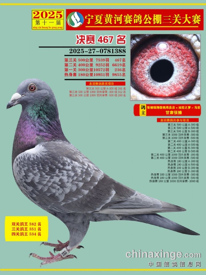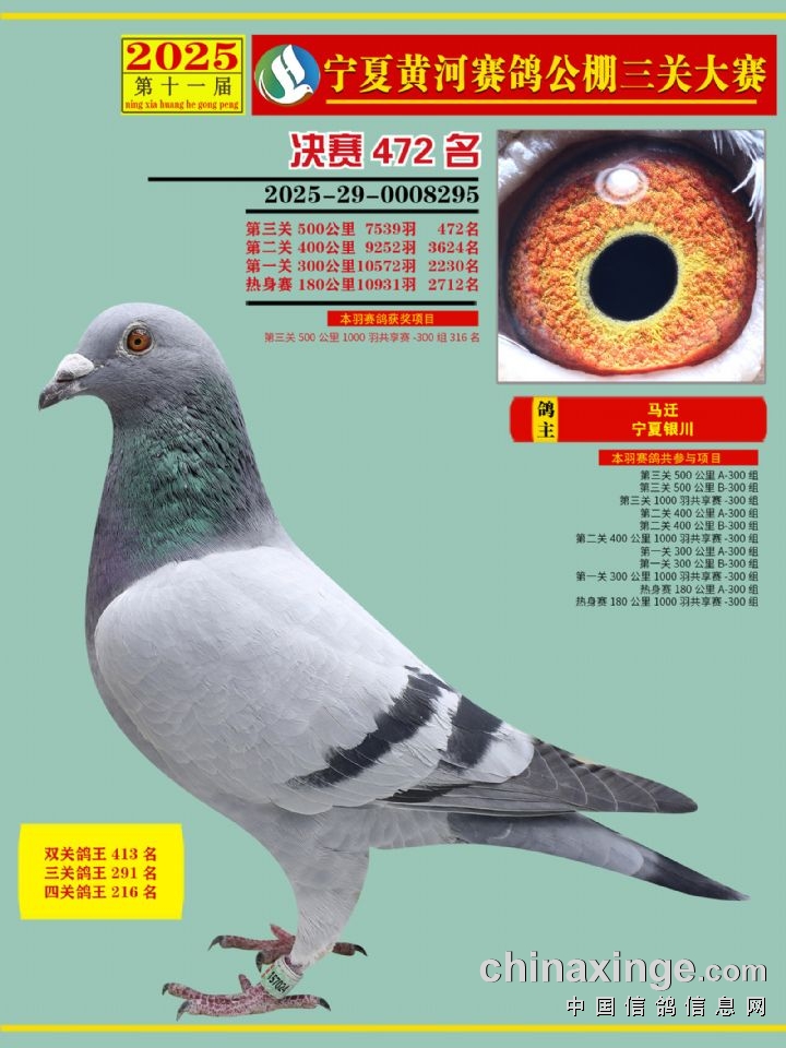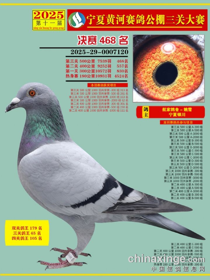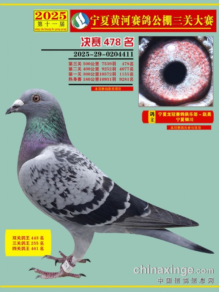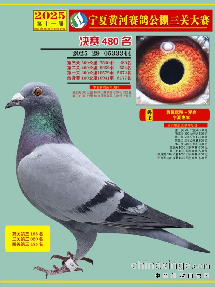 宁夏黄河赛鸽公棚第三关决赛500公里466-480名赏析