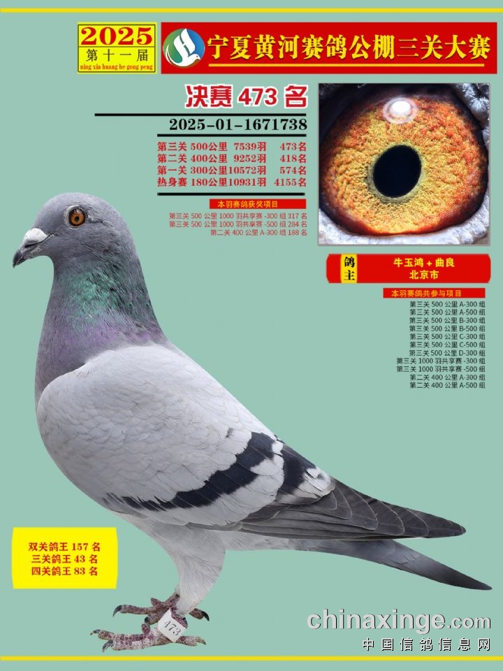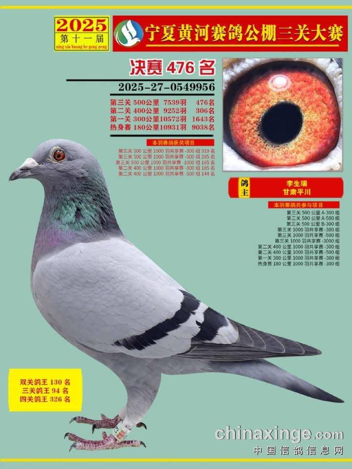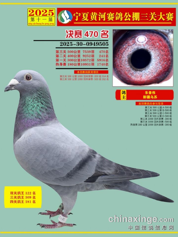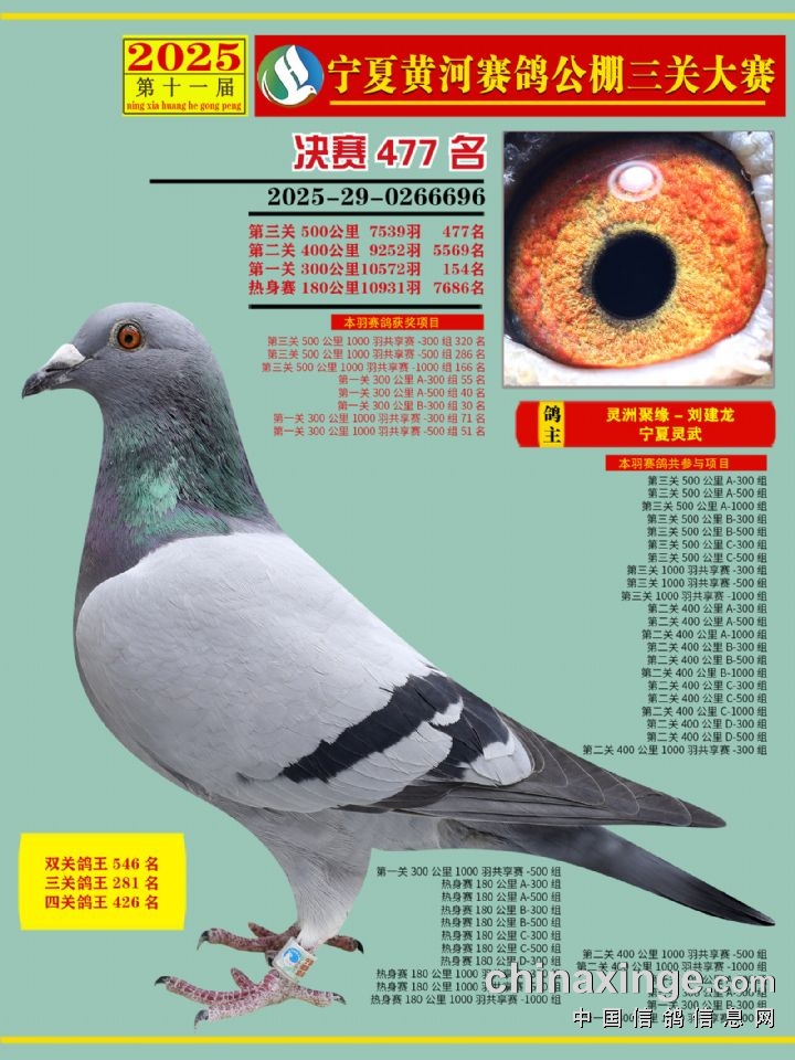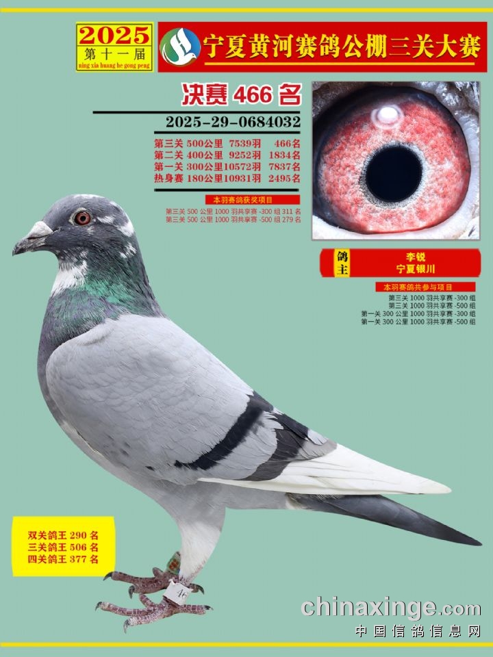 宁夏黄河赛鸽公棚第三关决赛500公里466-480名赏析