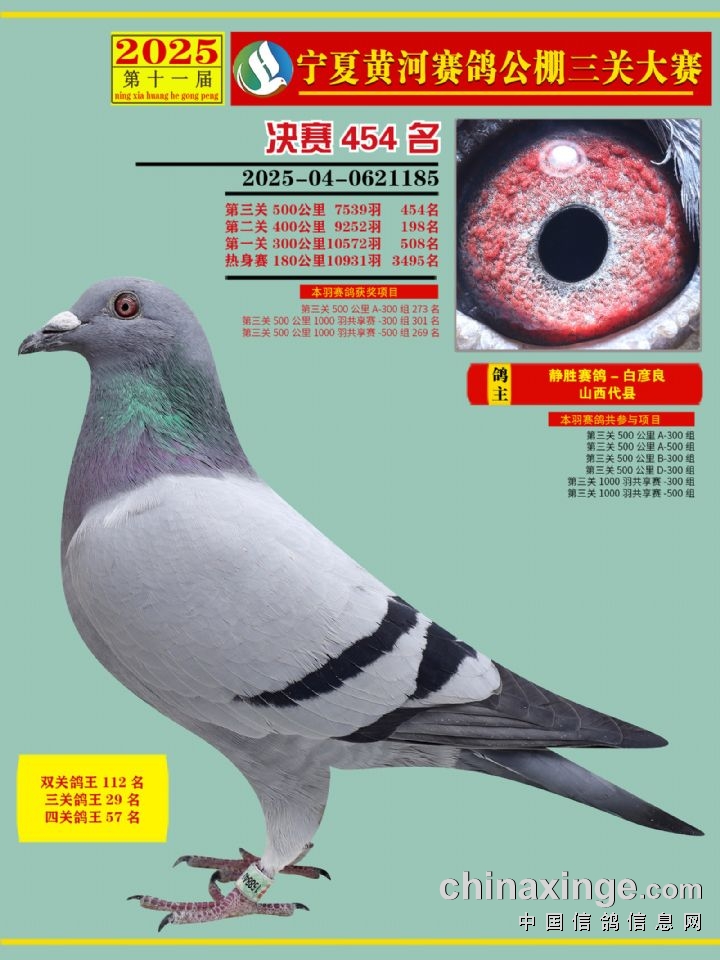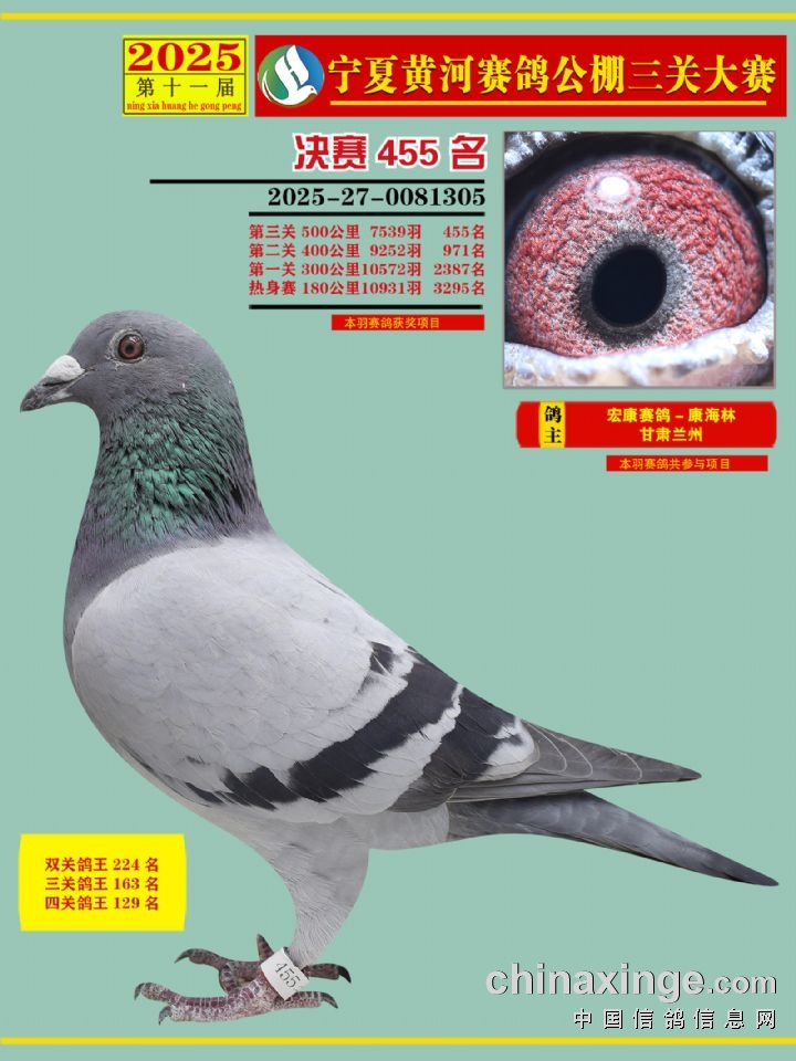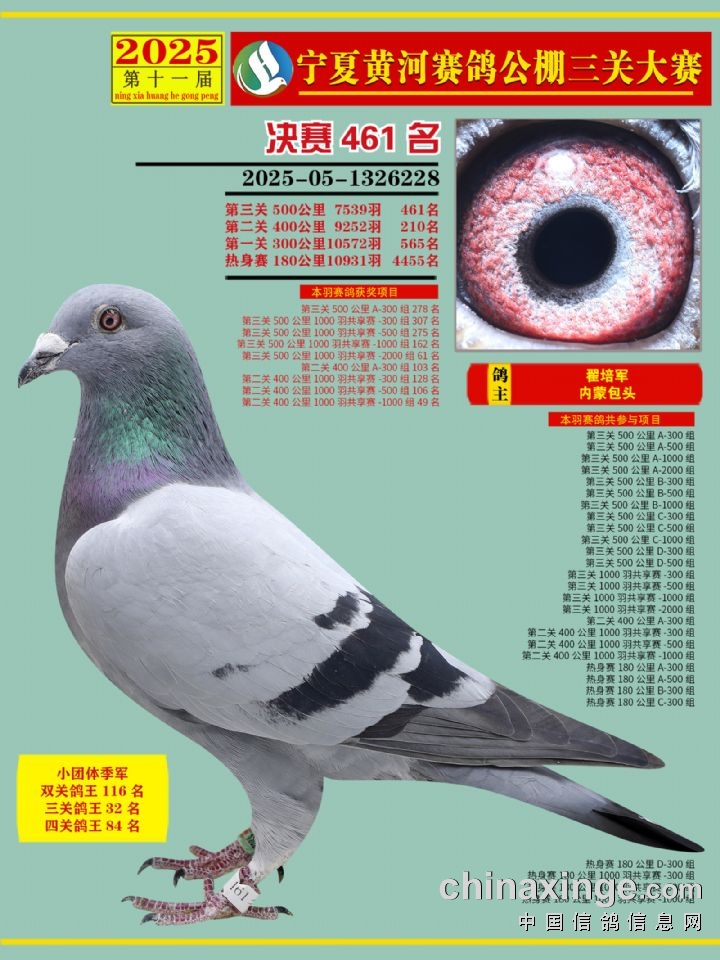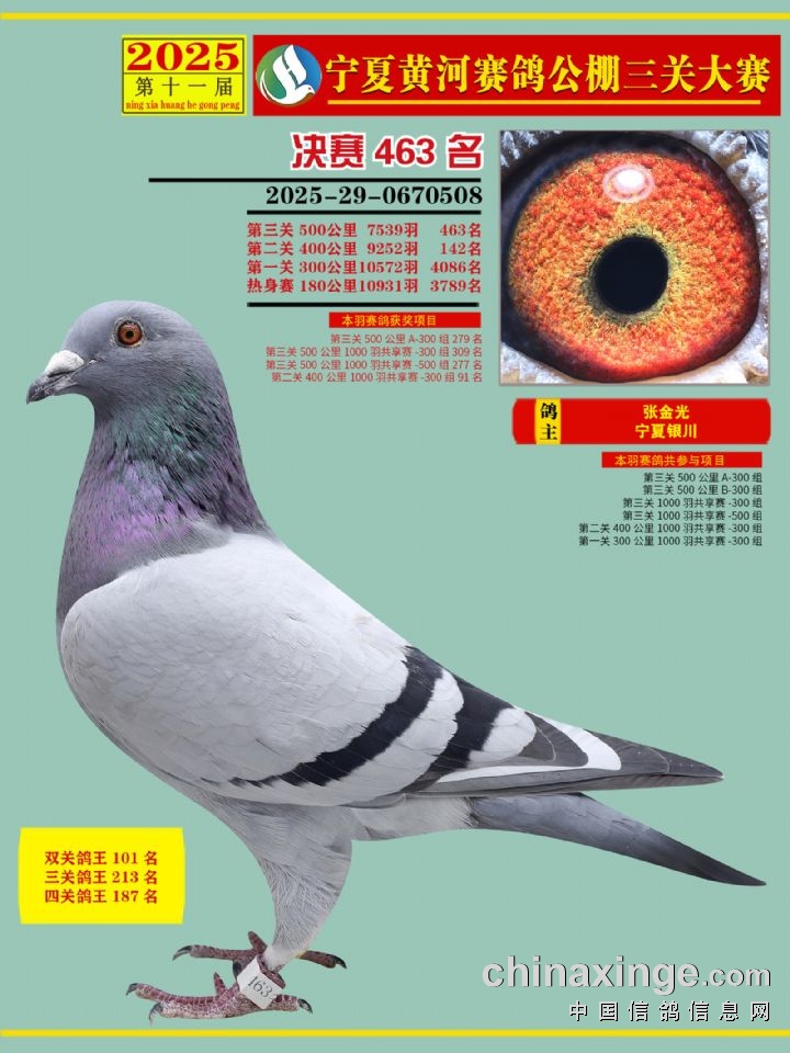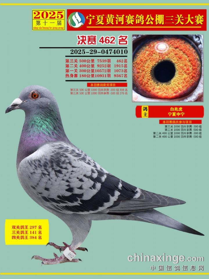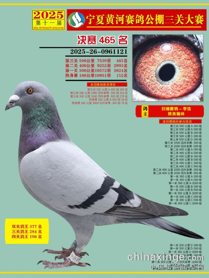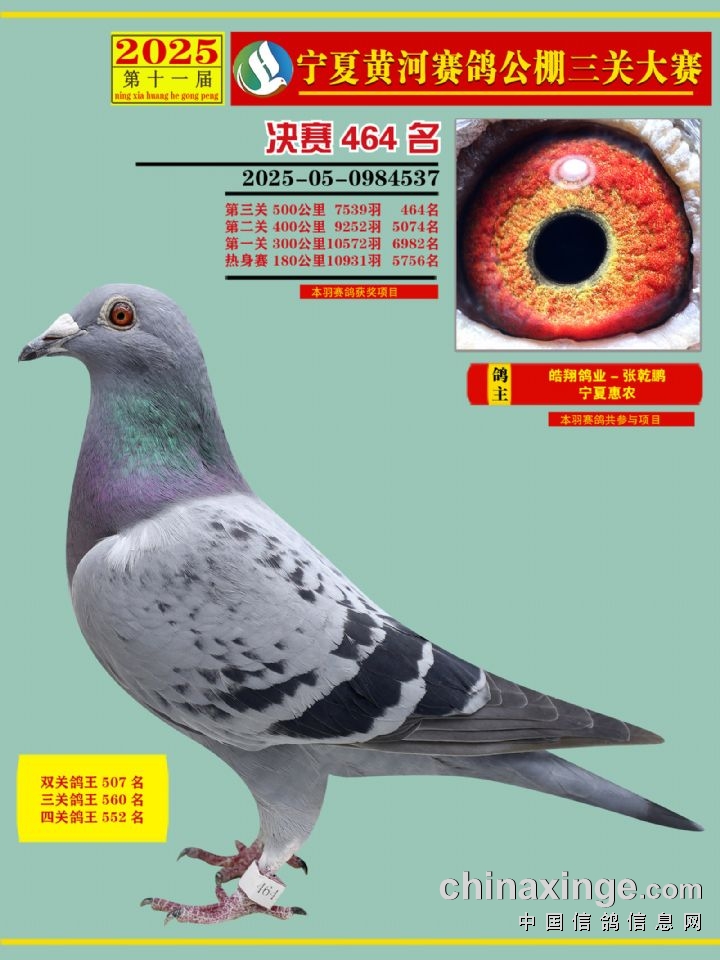 宁夏黄河赛鸽公棚第三关决赛500公里451-465名赏析