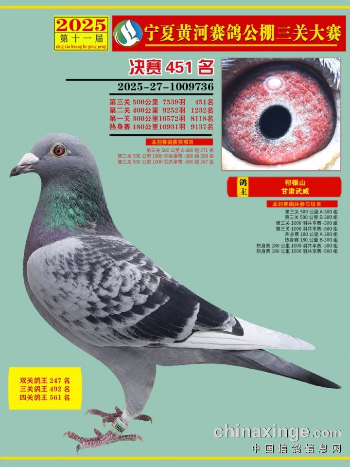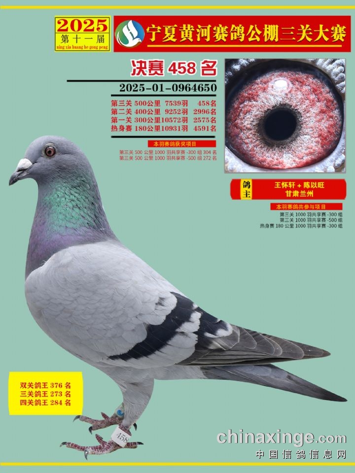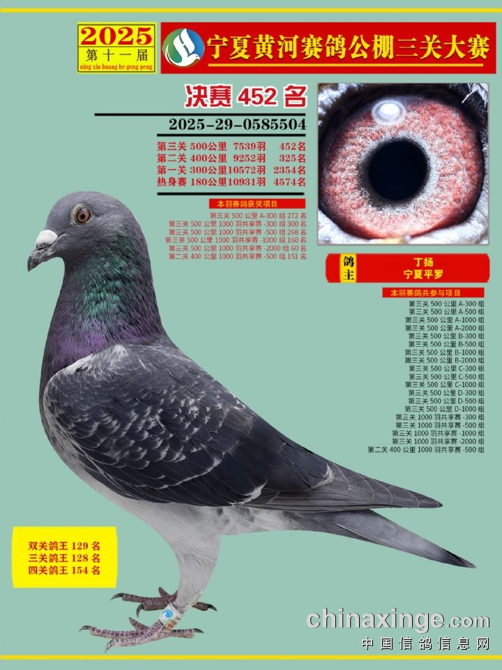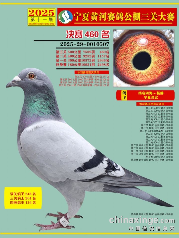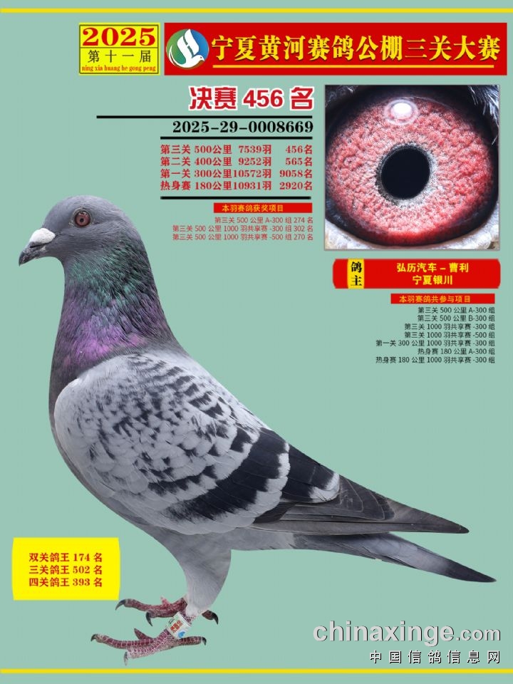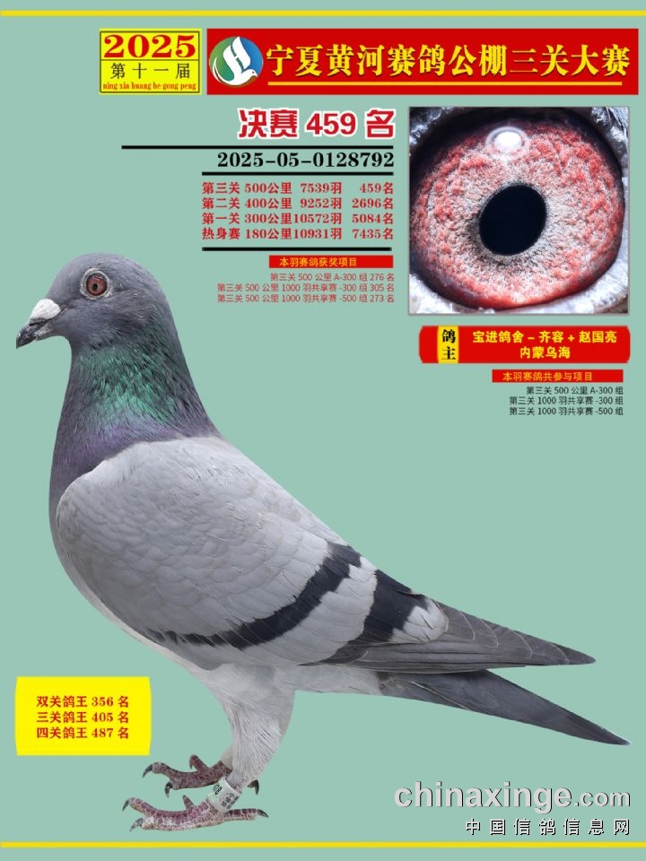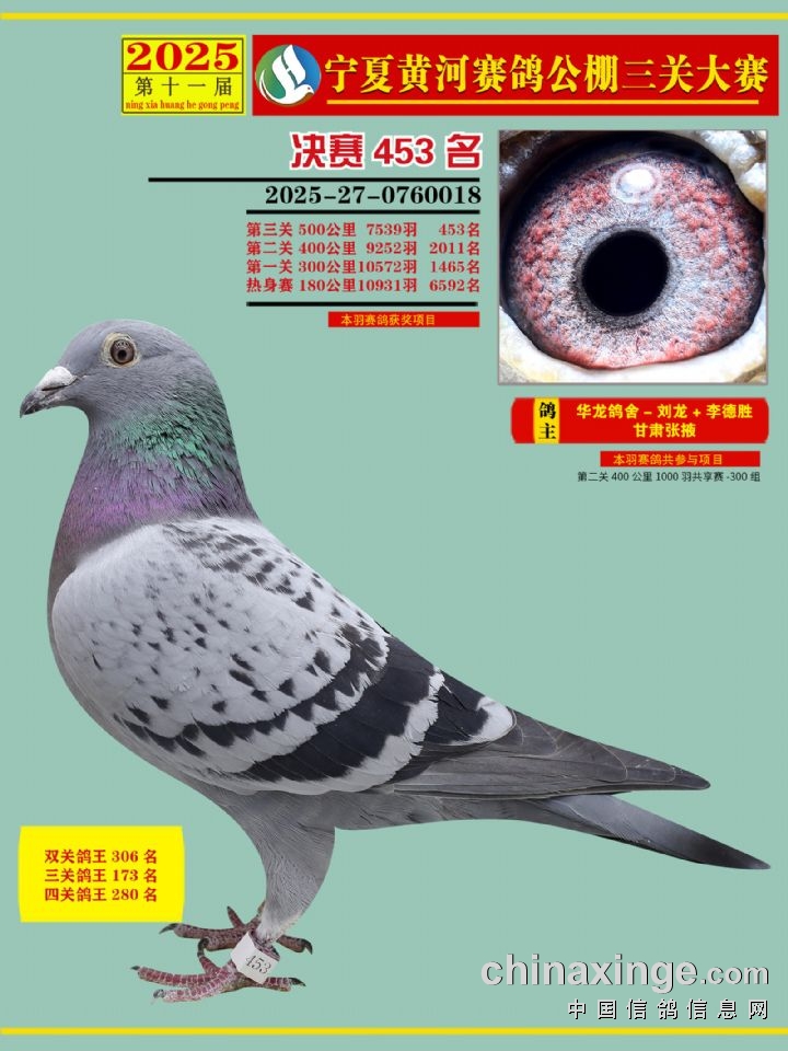 宁夏黄河赛鸽公棚第三关决赛500公里451-465名赏析