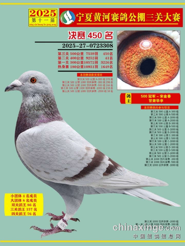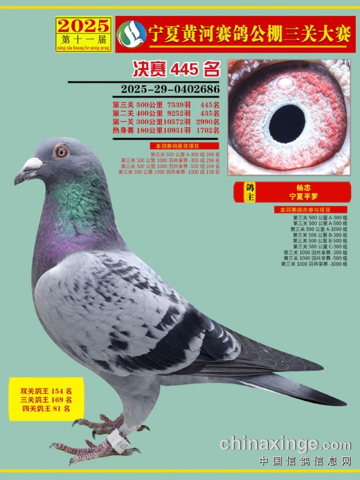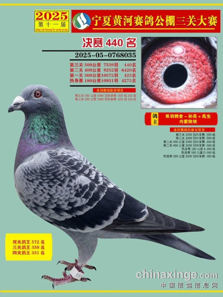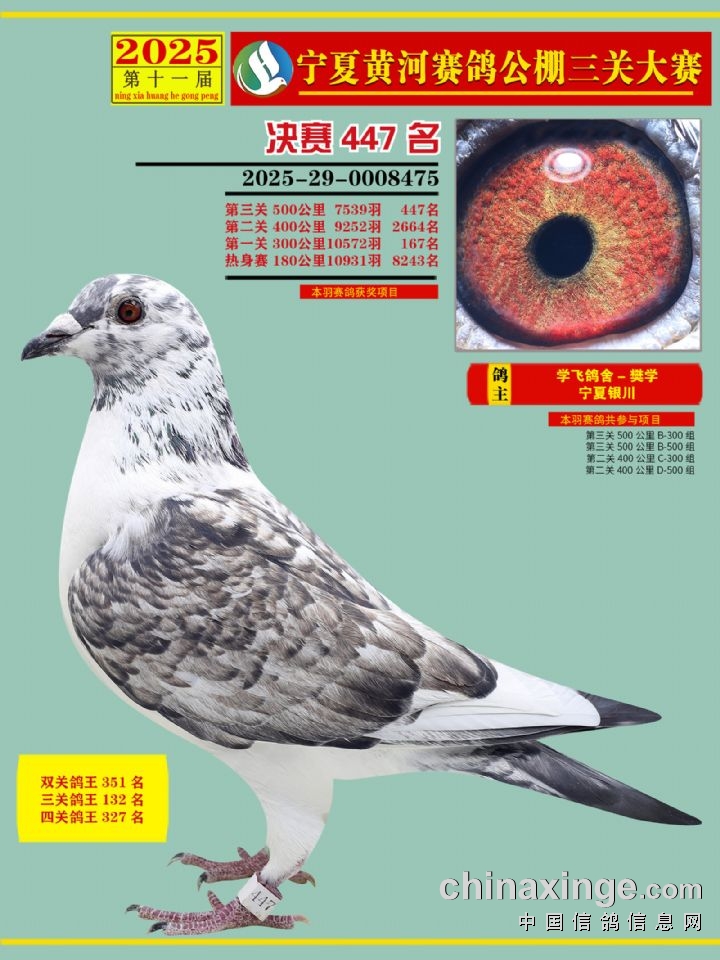 宁夏黄河赛鸽公棚第三关决赛500公里436-450名赏析