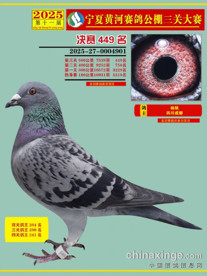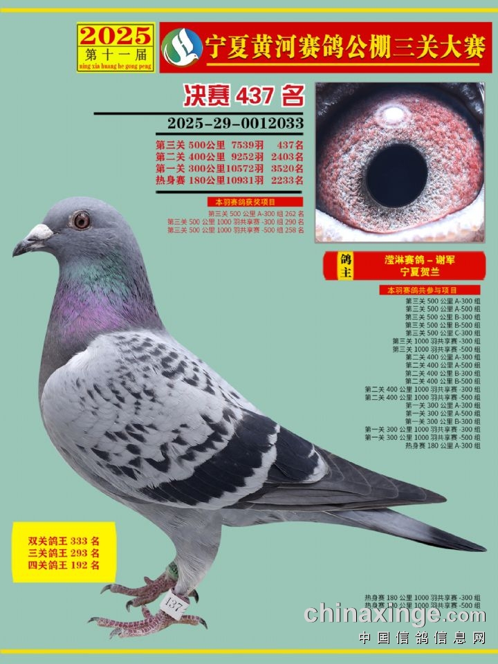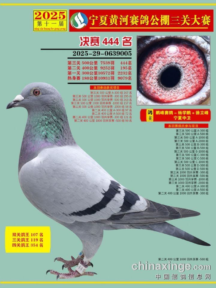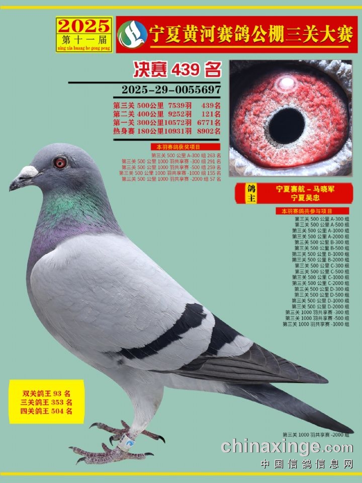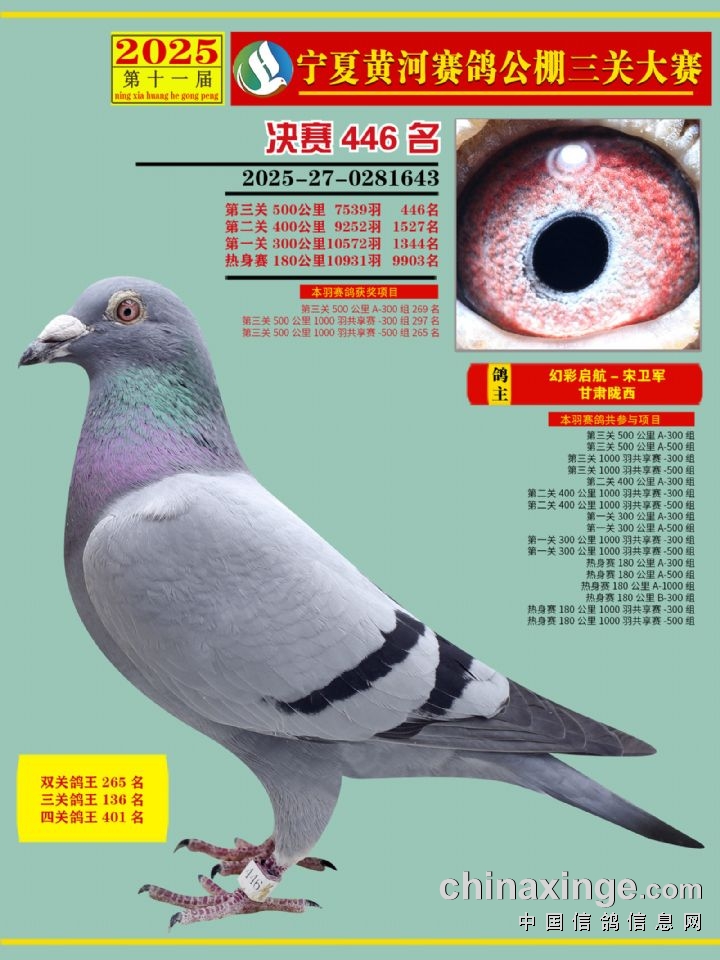 宁夏黄河赛鸽公棚第三关决赛500公里436-450名赏析