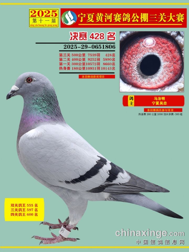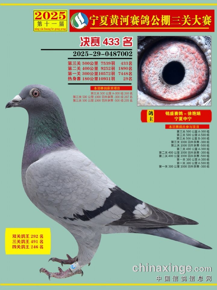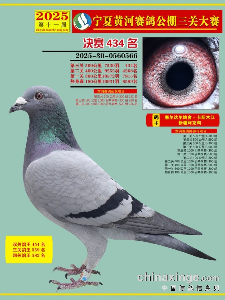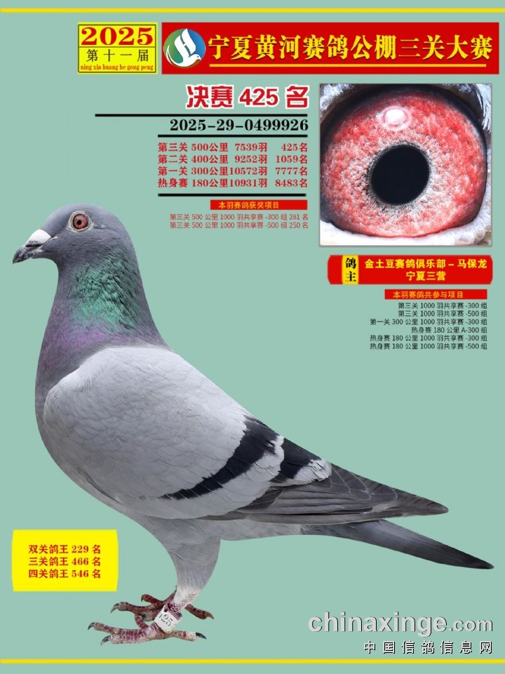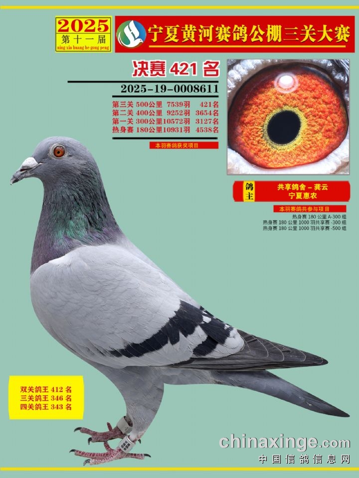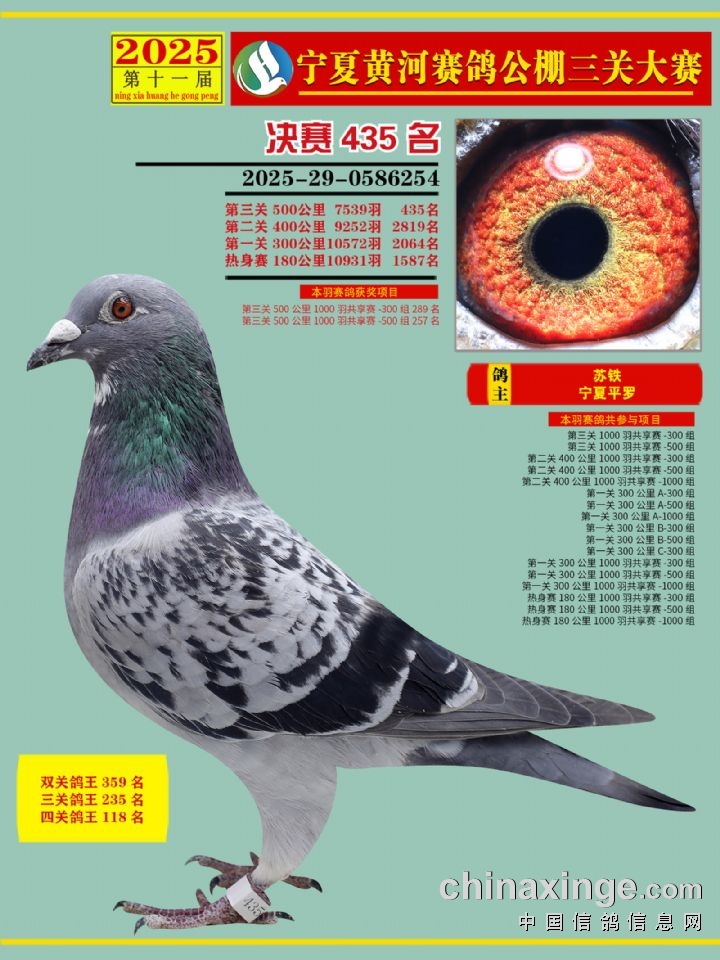 宁夏黄河赛鸽公棚第三关决赛500公里421-435名赏析