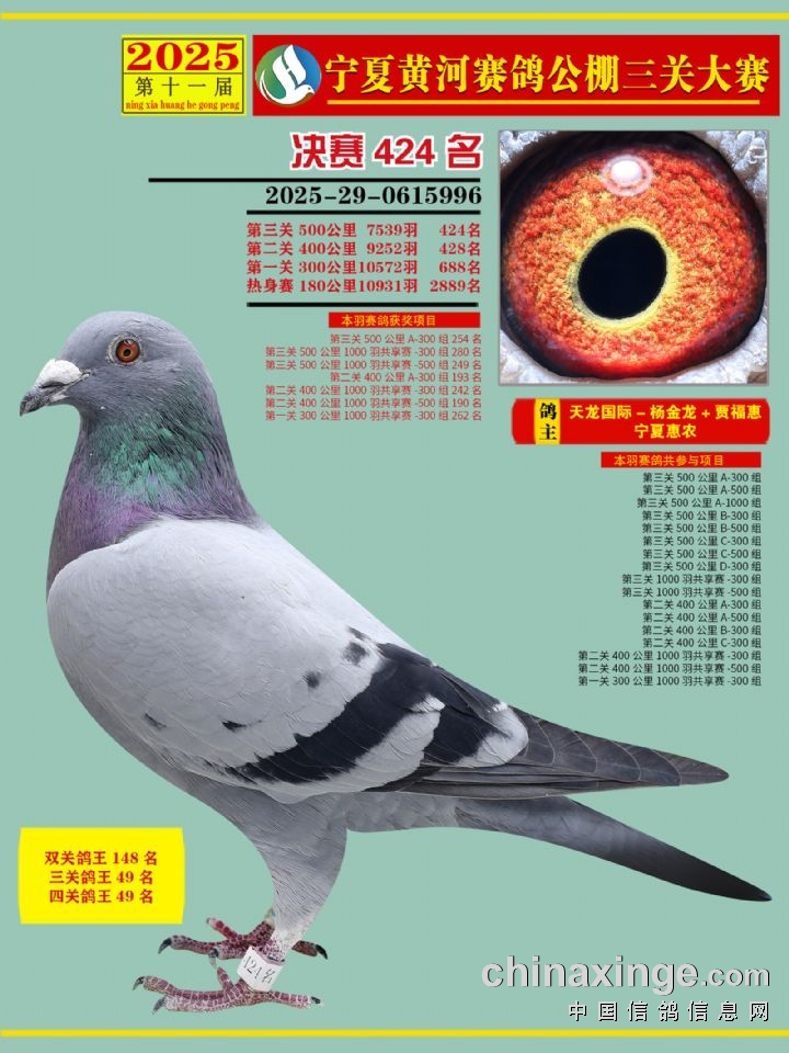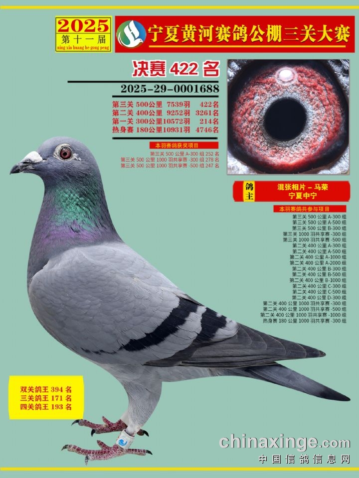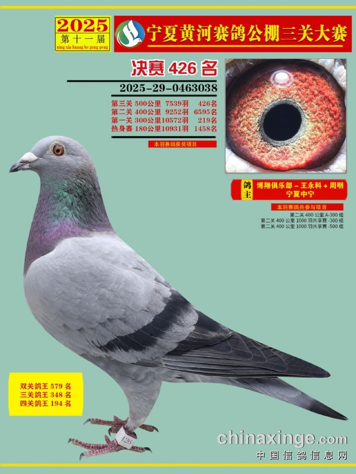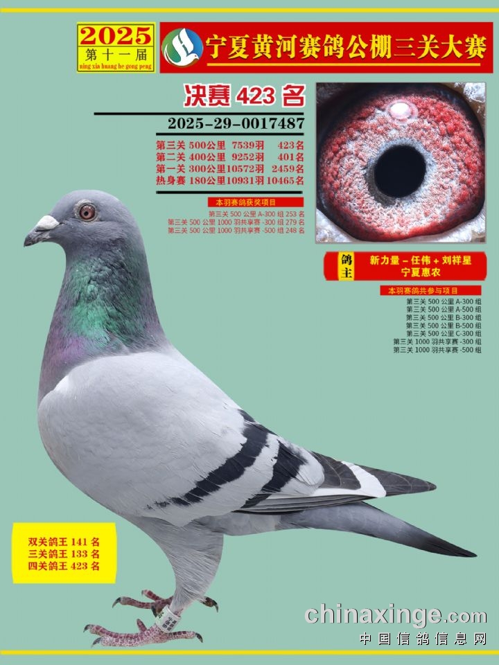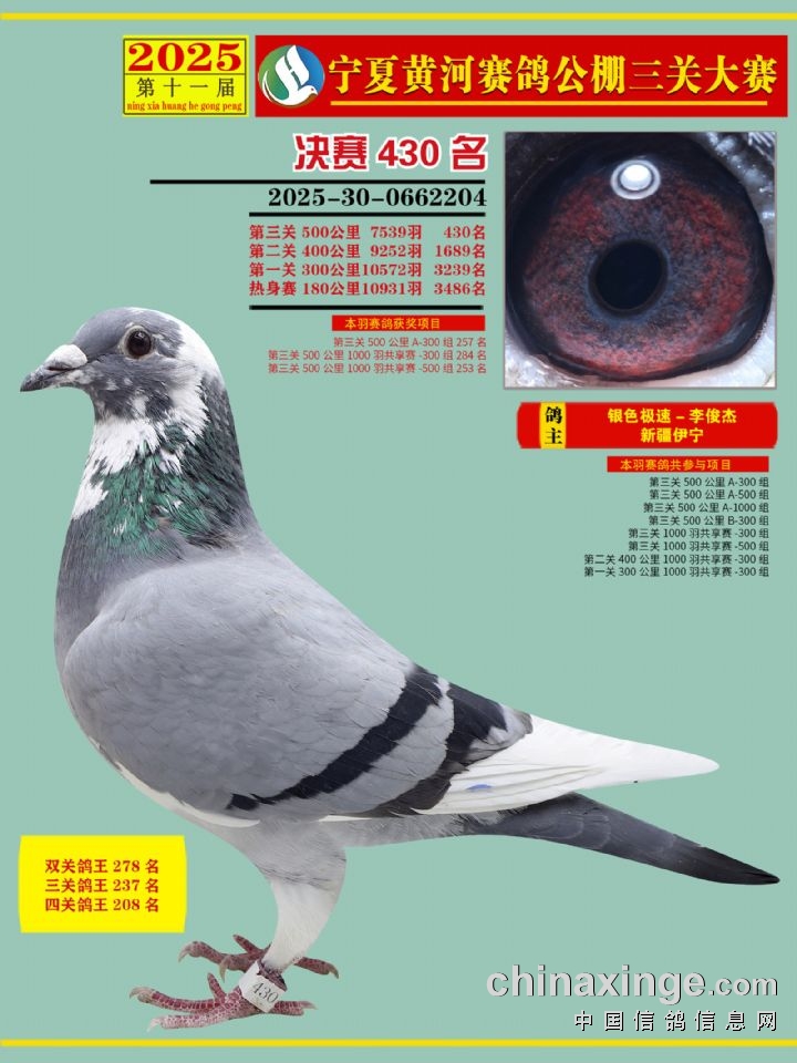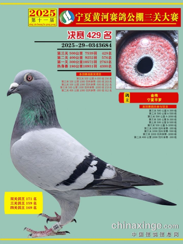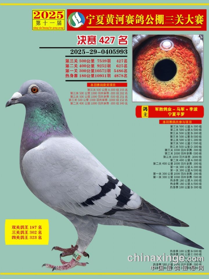 宁夏黄河赛鸽公棚第三关决赛500公里421-435名赏析