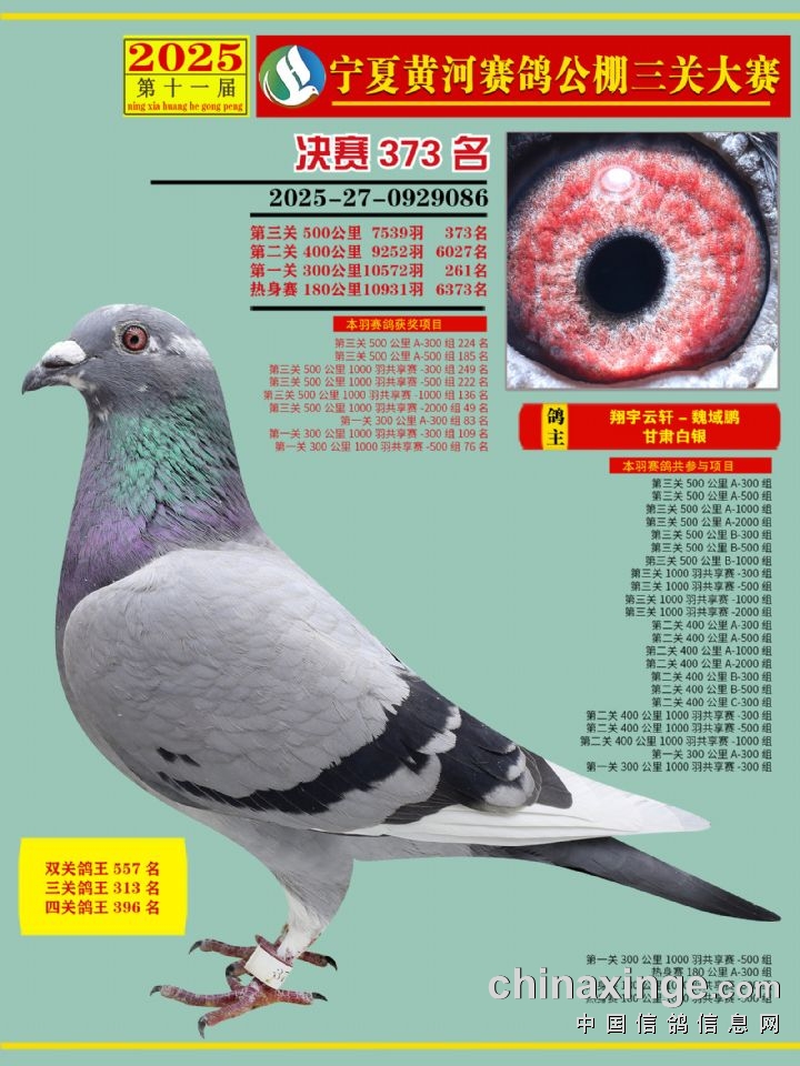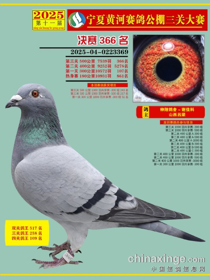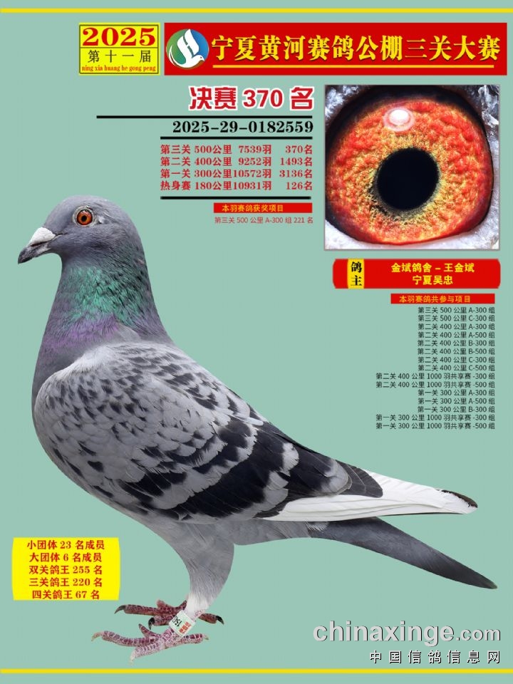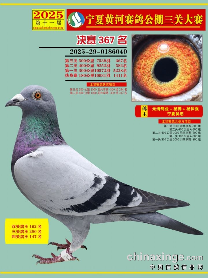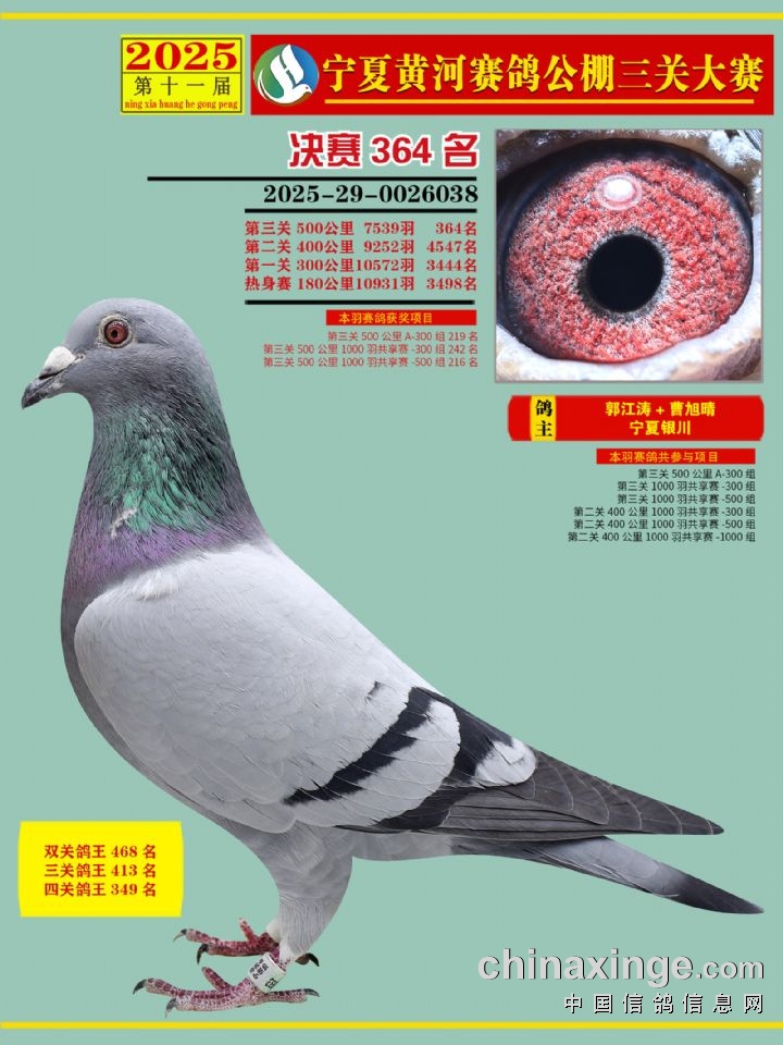 宁夏黄河赛鸽公棚第三关决赛500公里361-375名赏析