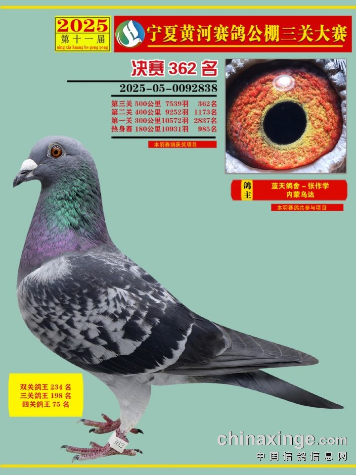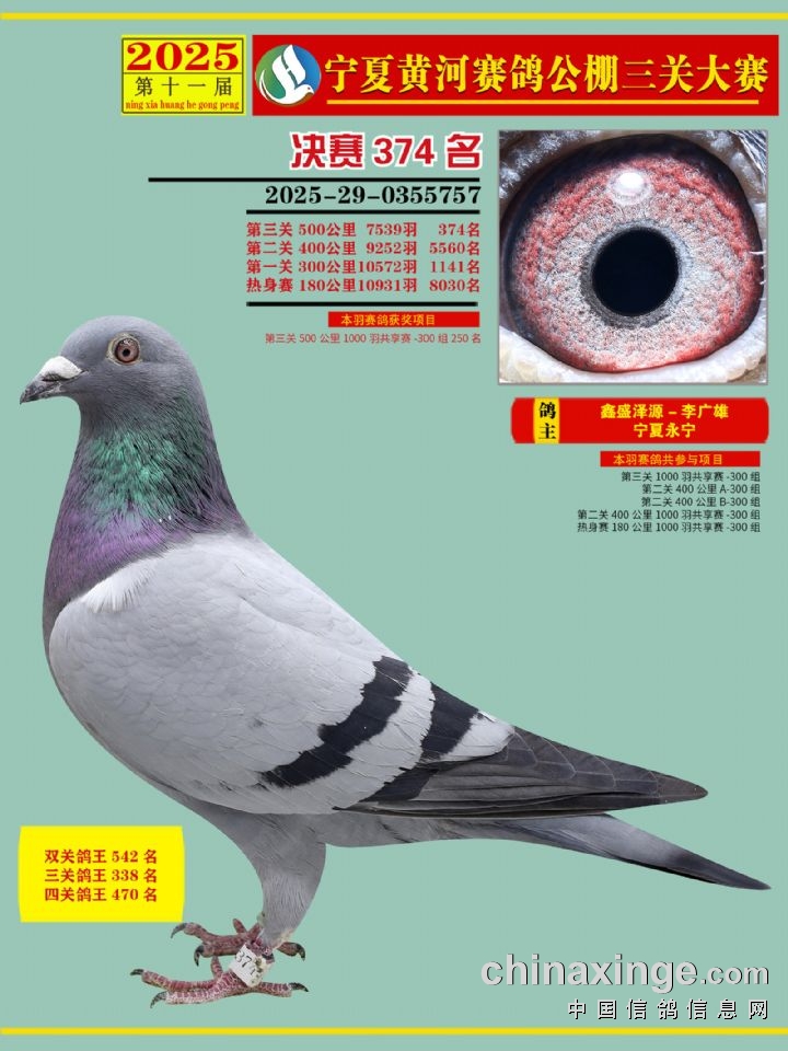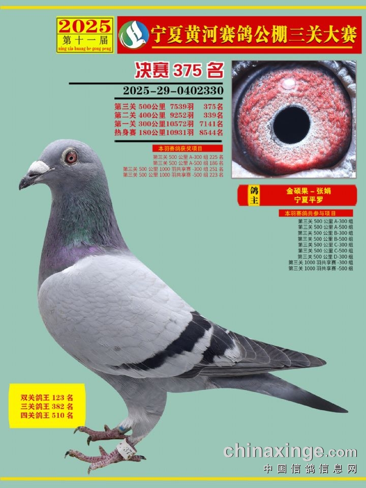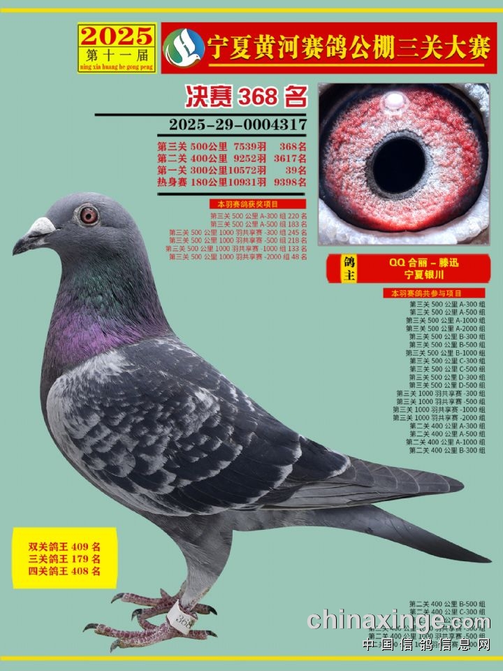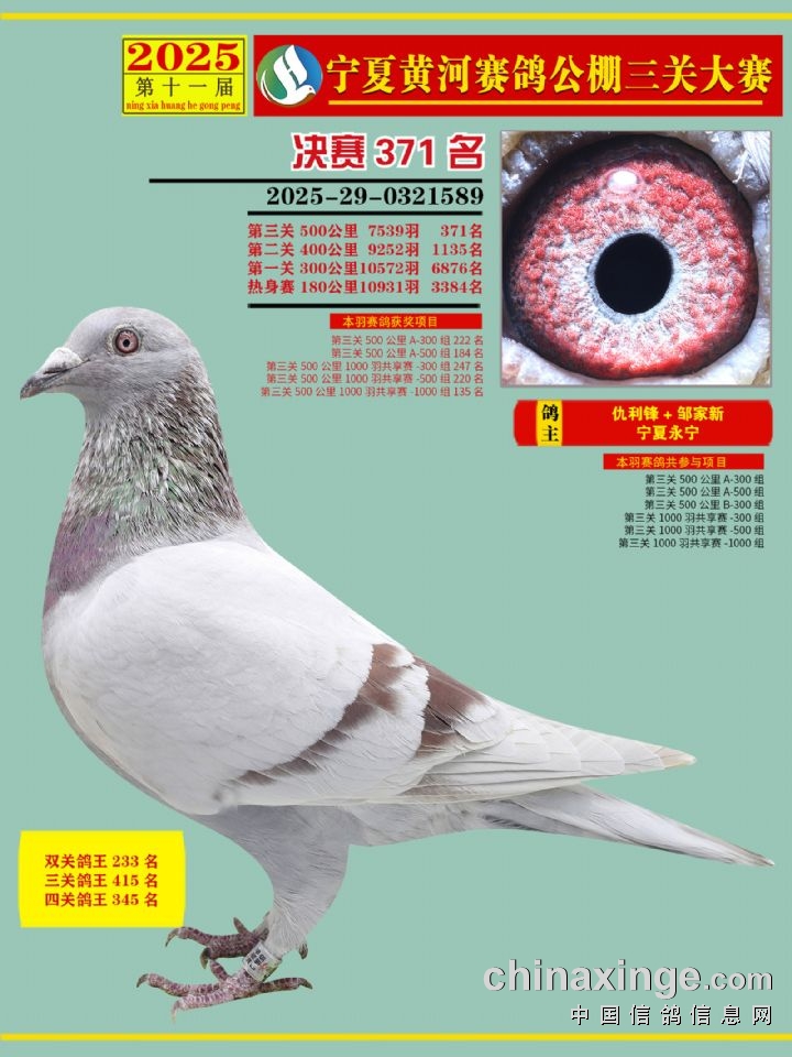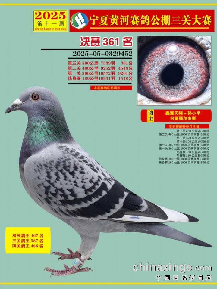 宁夏黄河赛鸽公棚第三关决赛500公里361-375名赏析