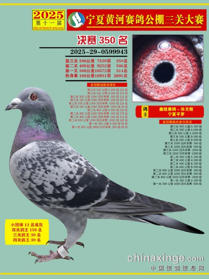 宁夏黄河赛鸽公棚双关鸽王加关赛第二关上笼清单