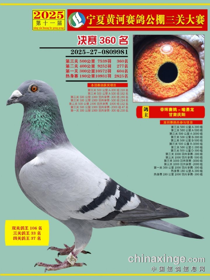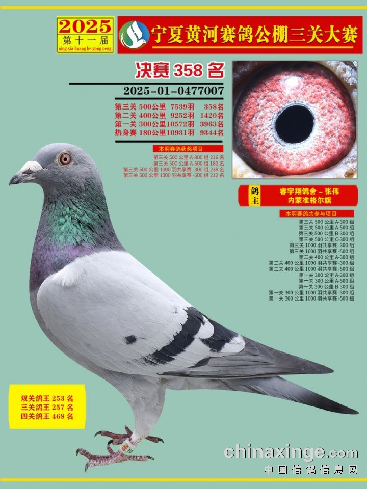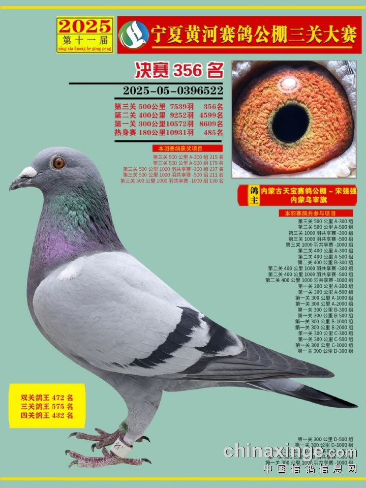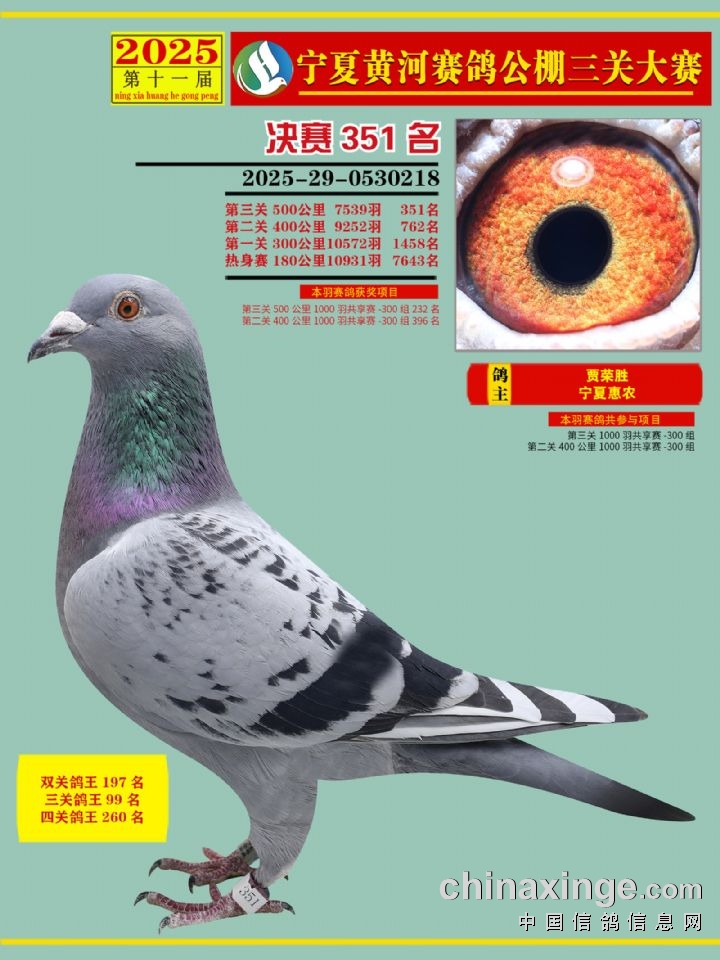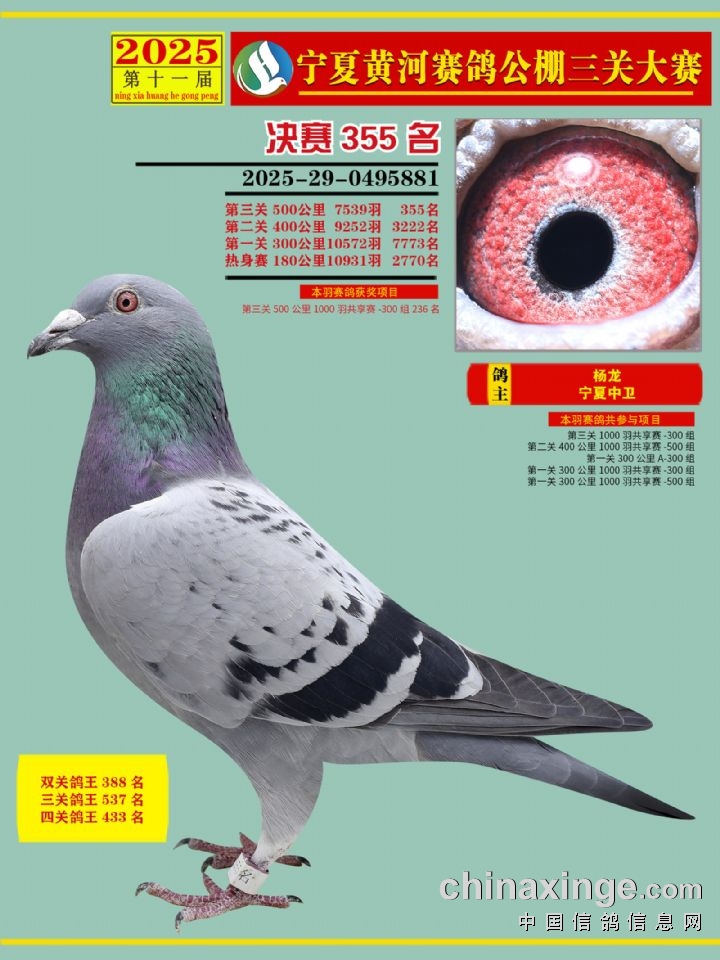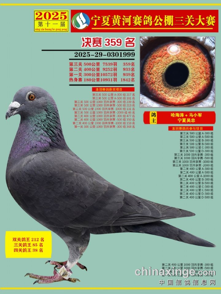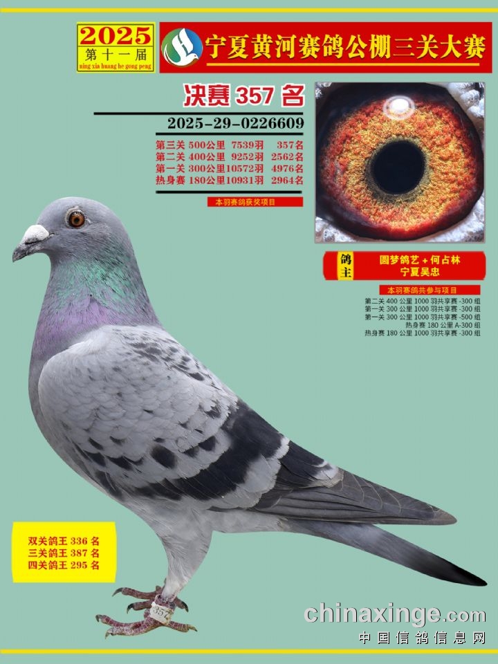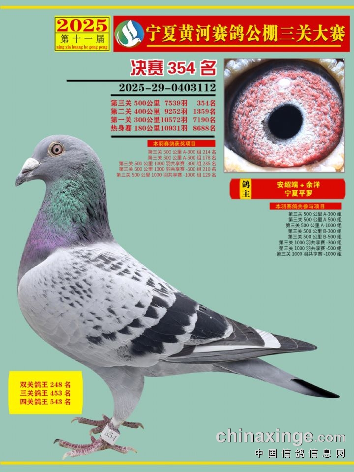 宁夏黄河赛鸽公棚第三关决赛500公里346-460名赏析