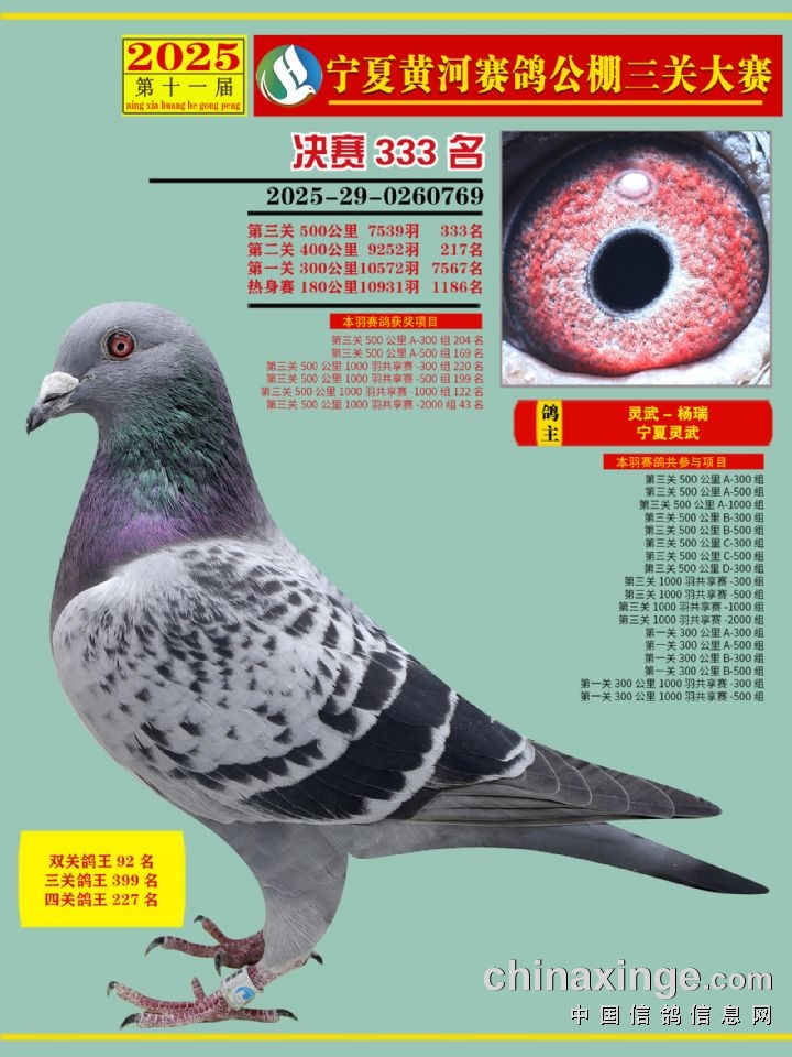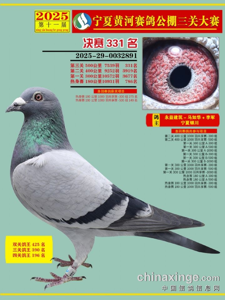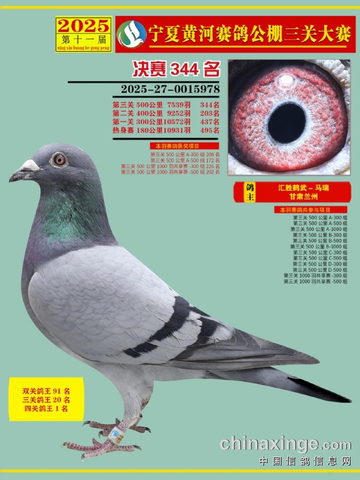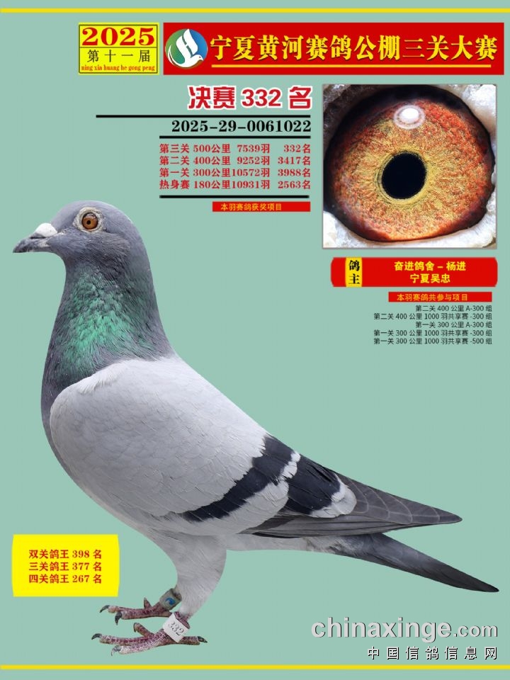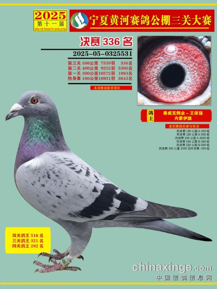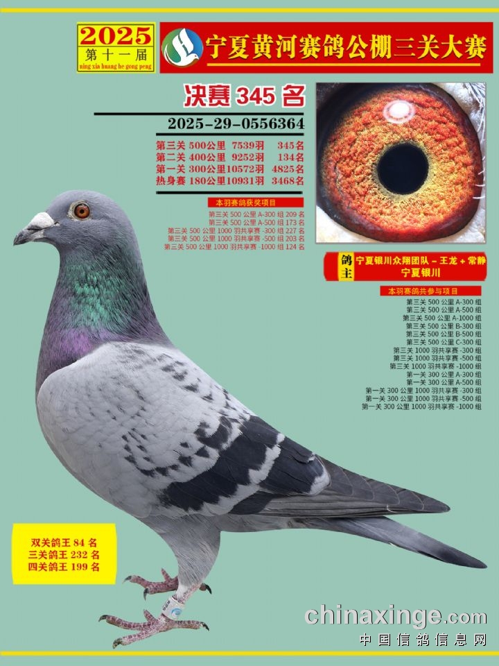 宁夏黄河赛鸽公棚第三关决赛500公里331-345名赏析