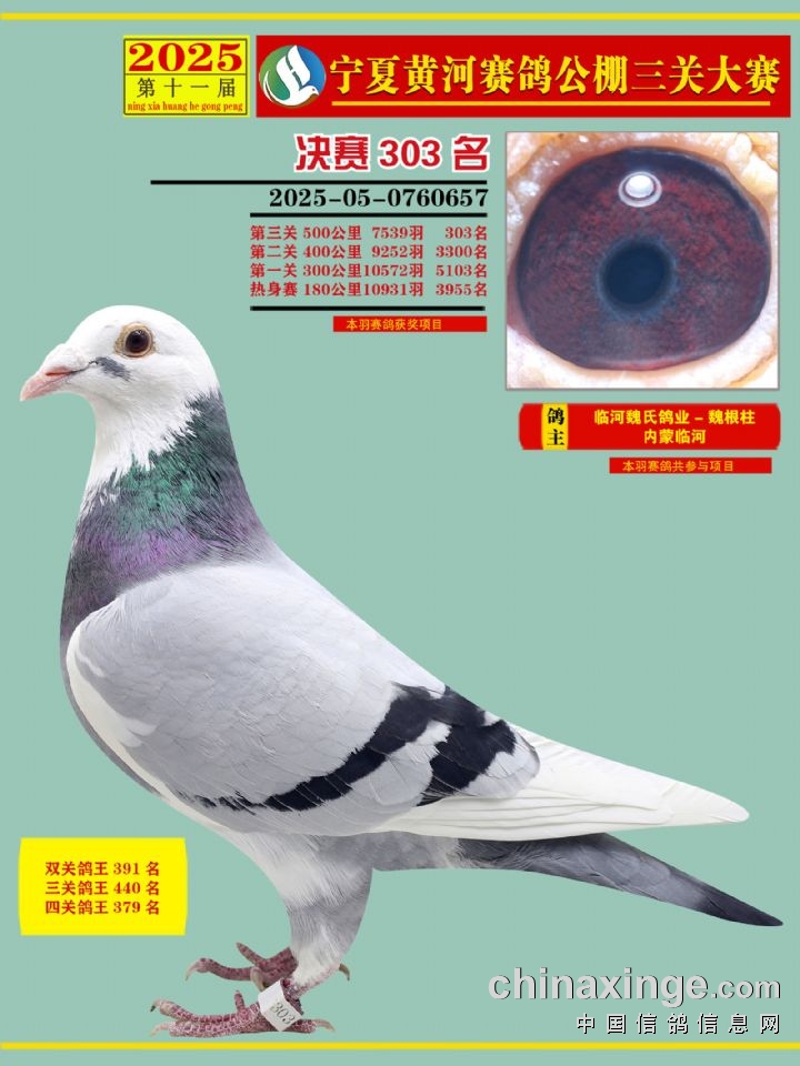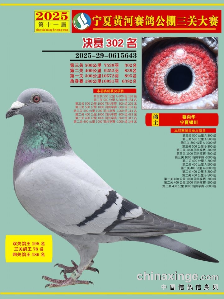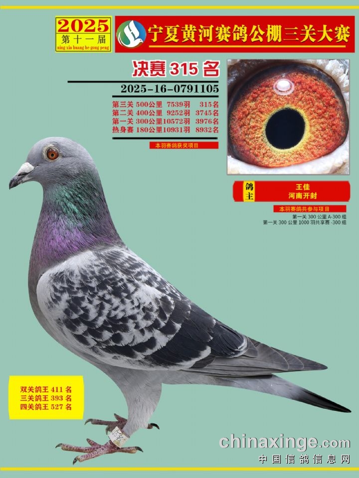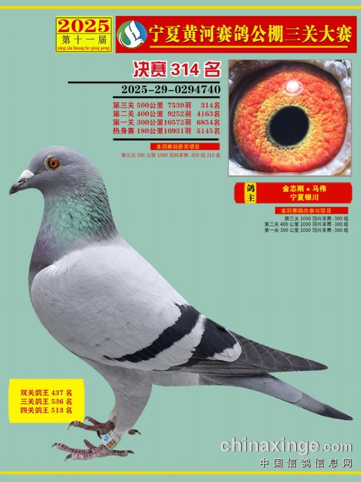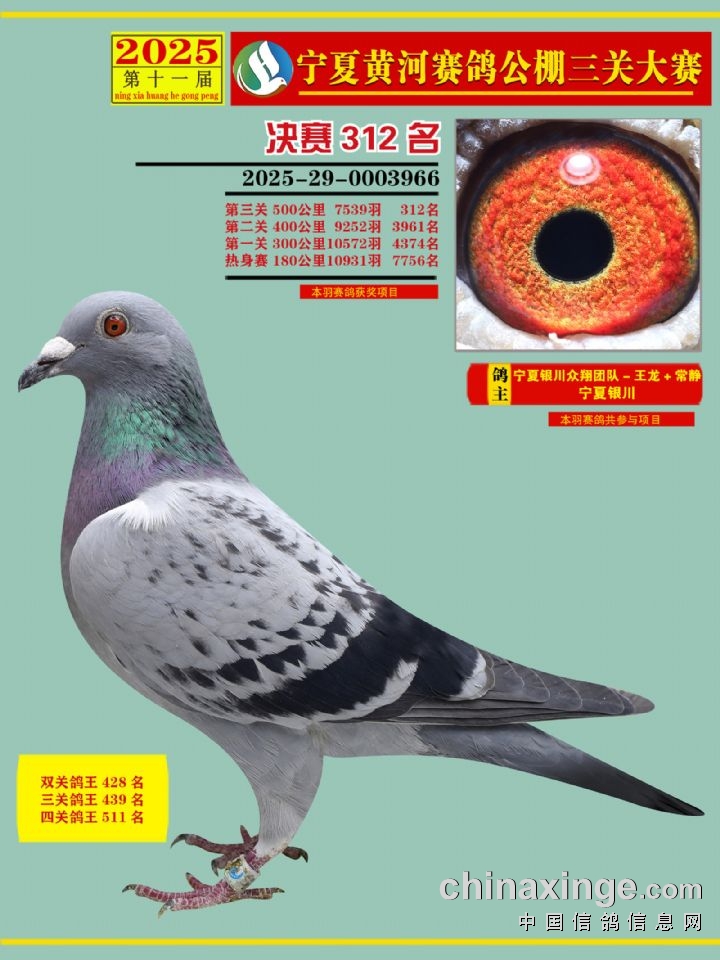 宁夏黄河赛鸽公棚第三关决赛500公里301-315名赏析