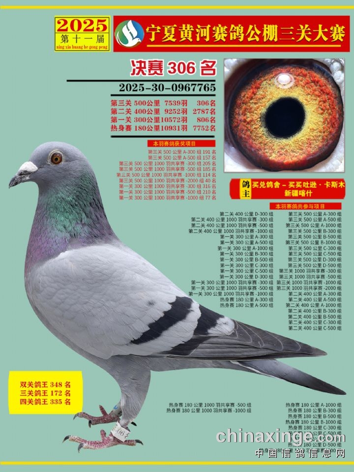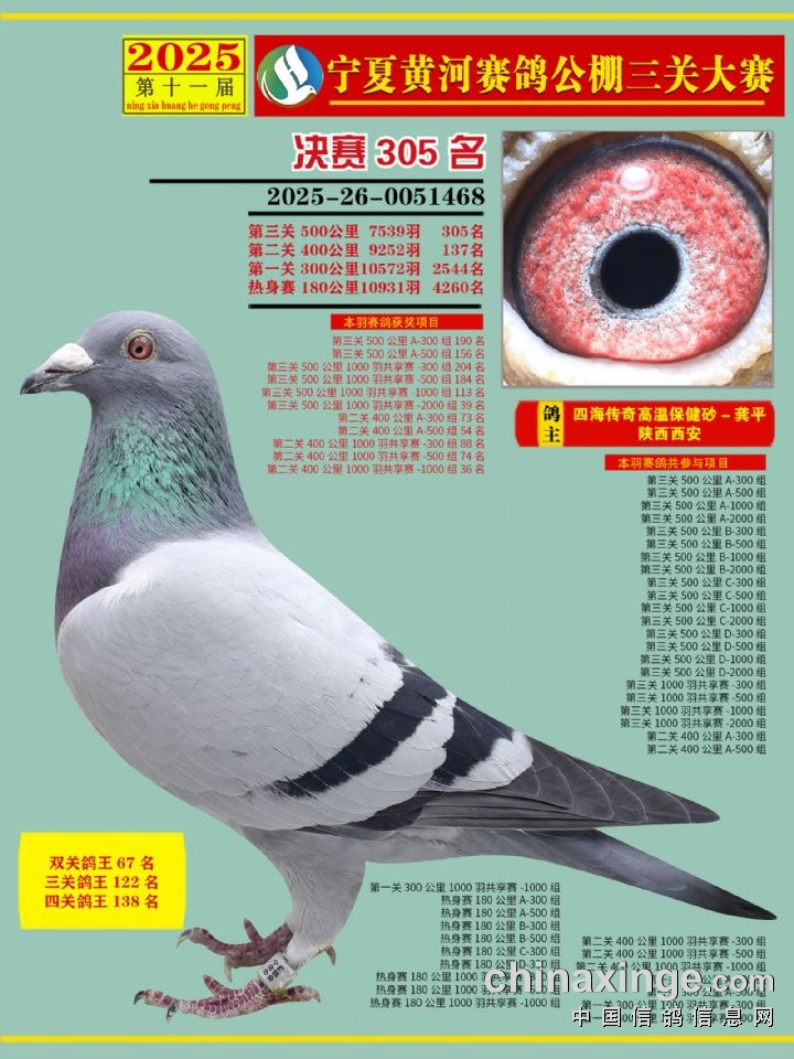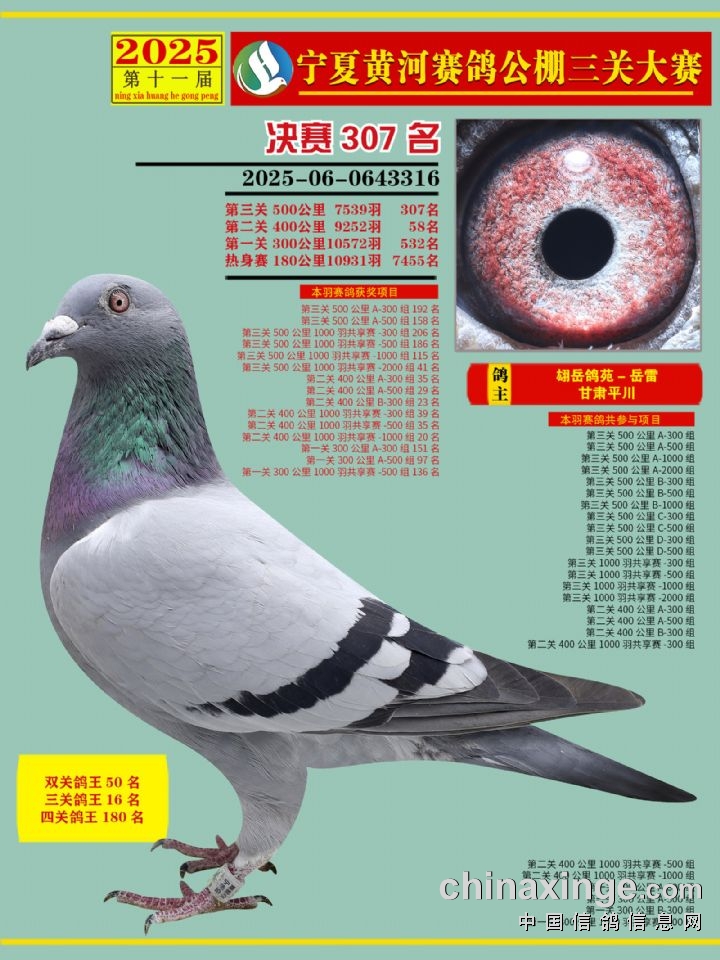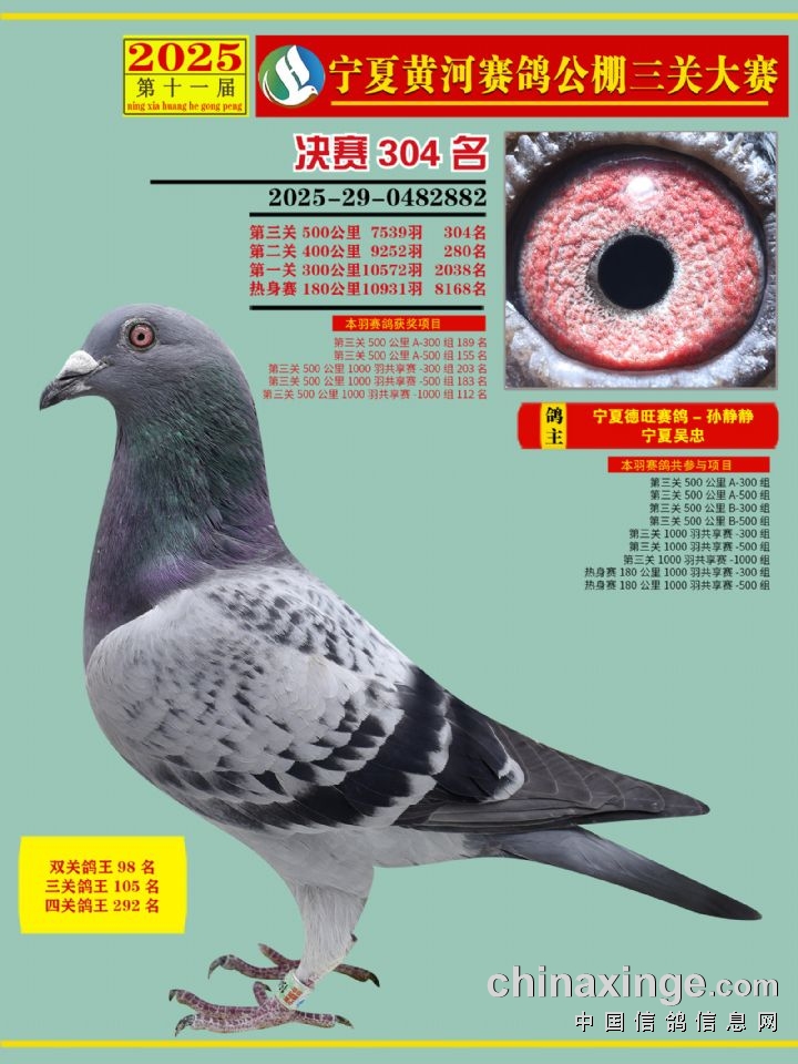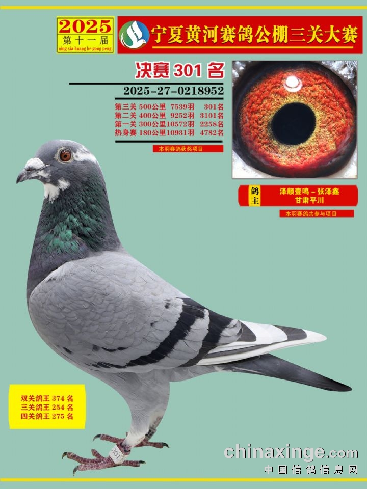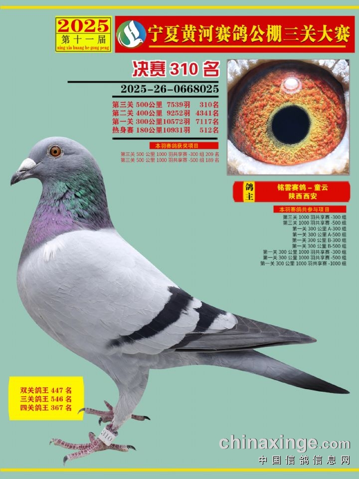 宁夏黄河赛鸽公棚第三关决赛500公里301-315名赏析