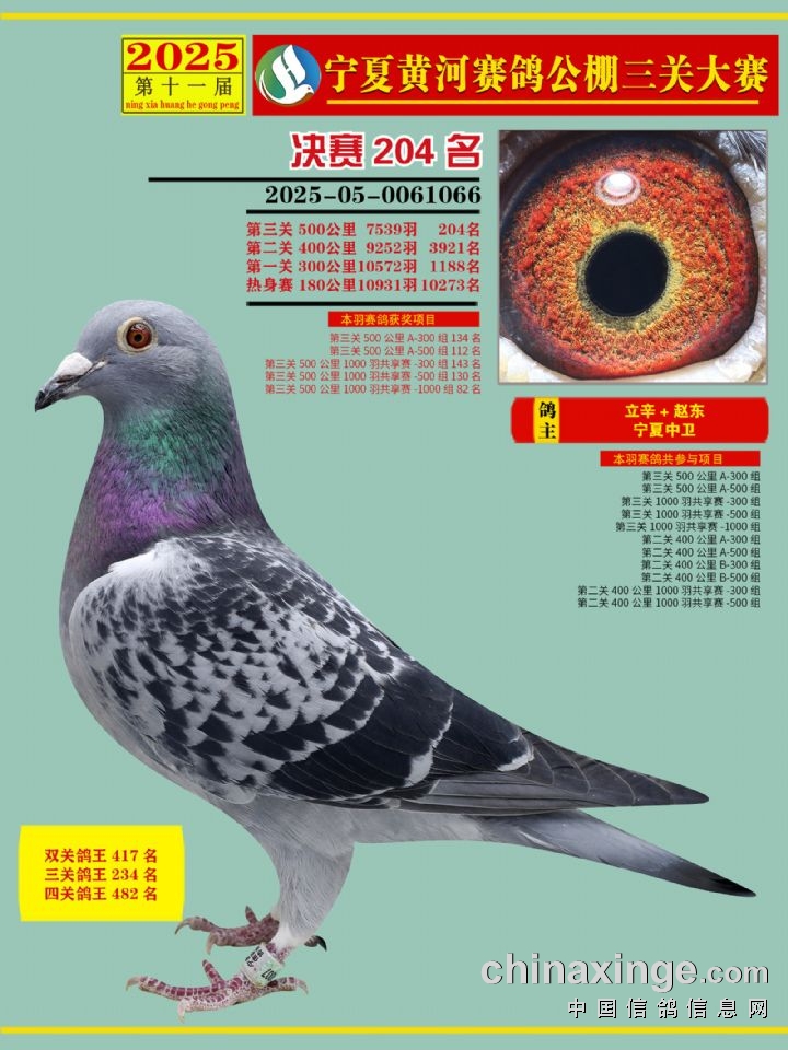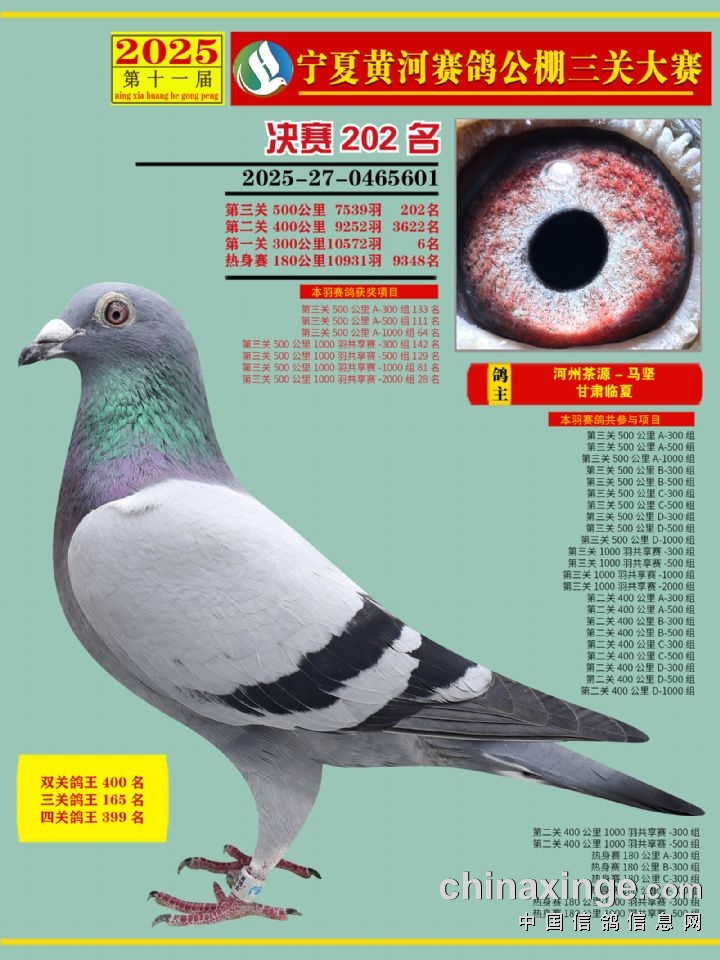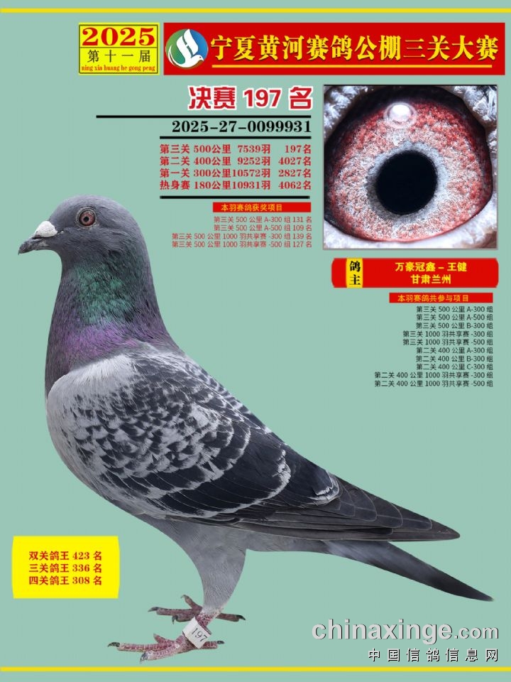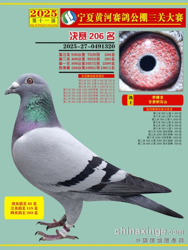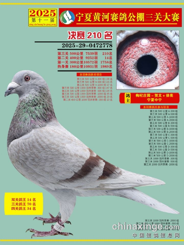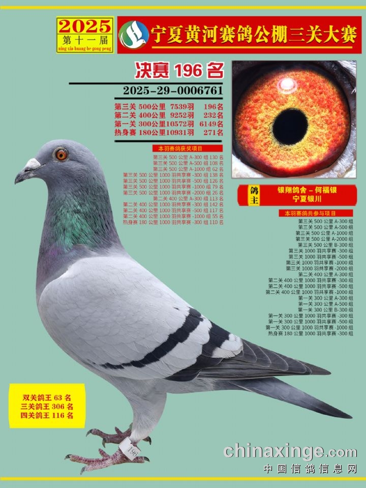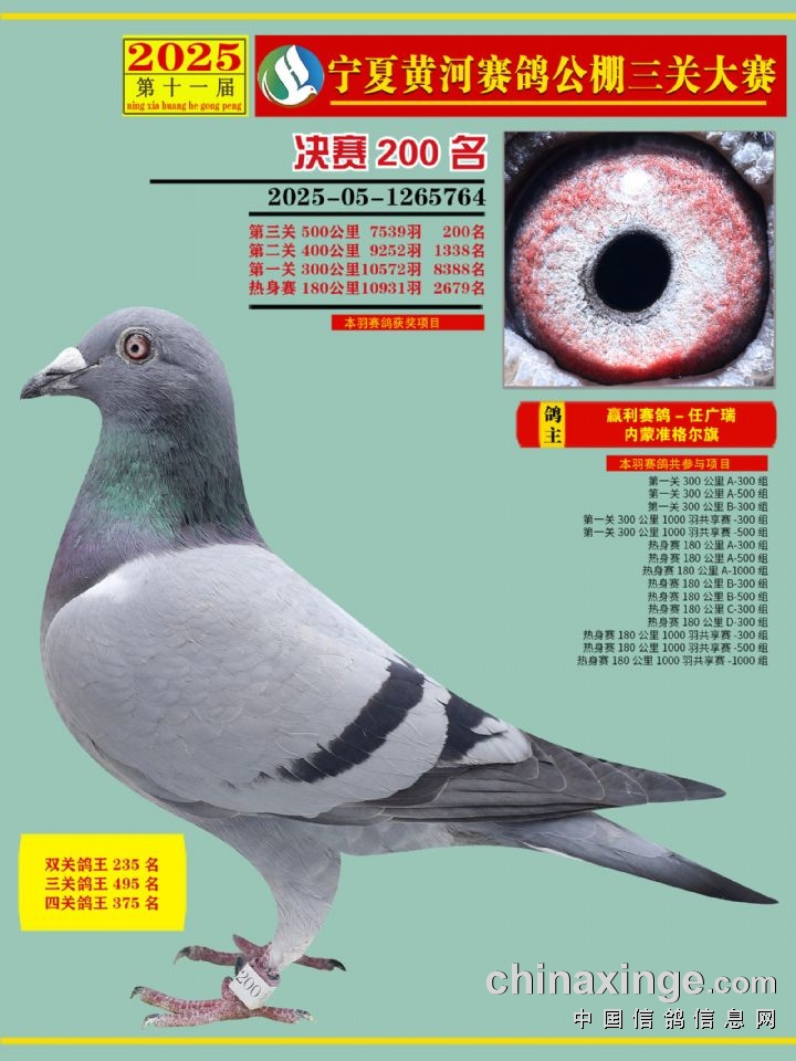 宁夏黄河赛鸽公棚第三关决赛500公里196-210名赏析