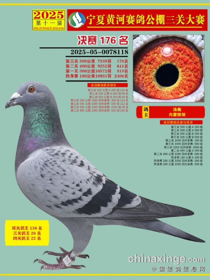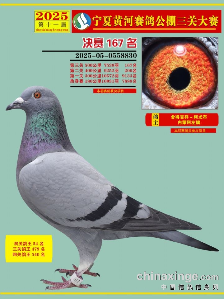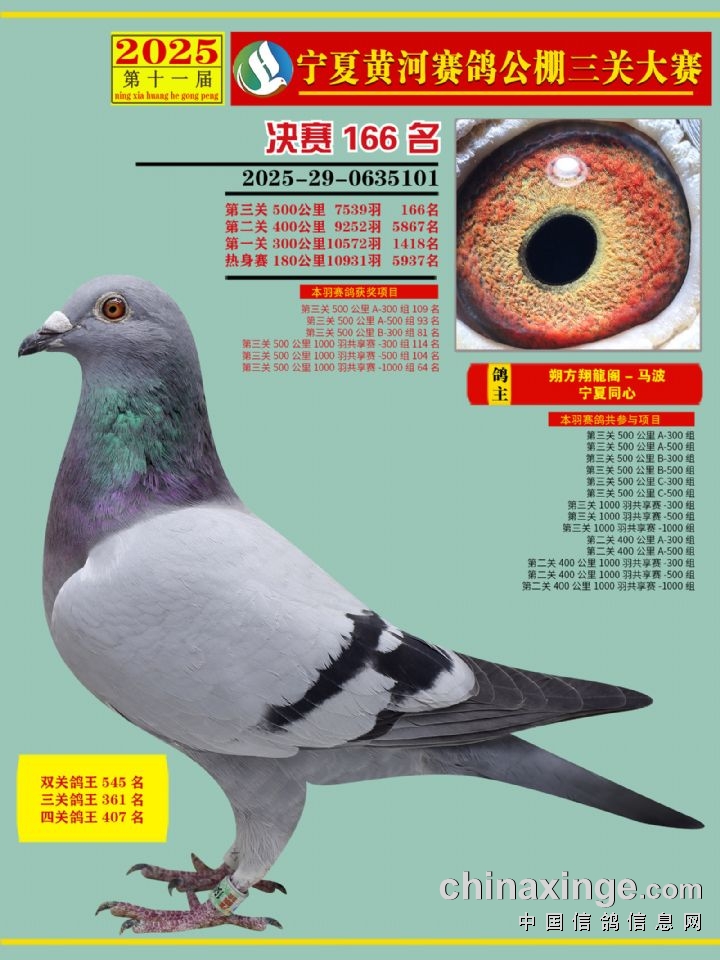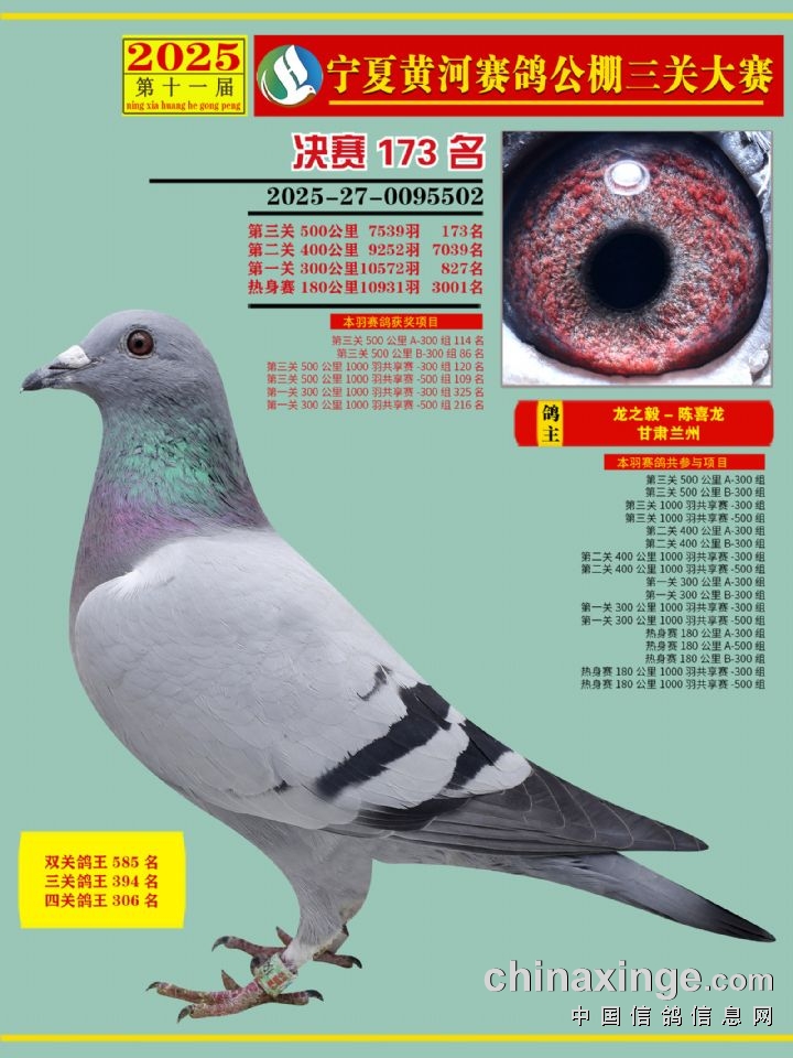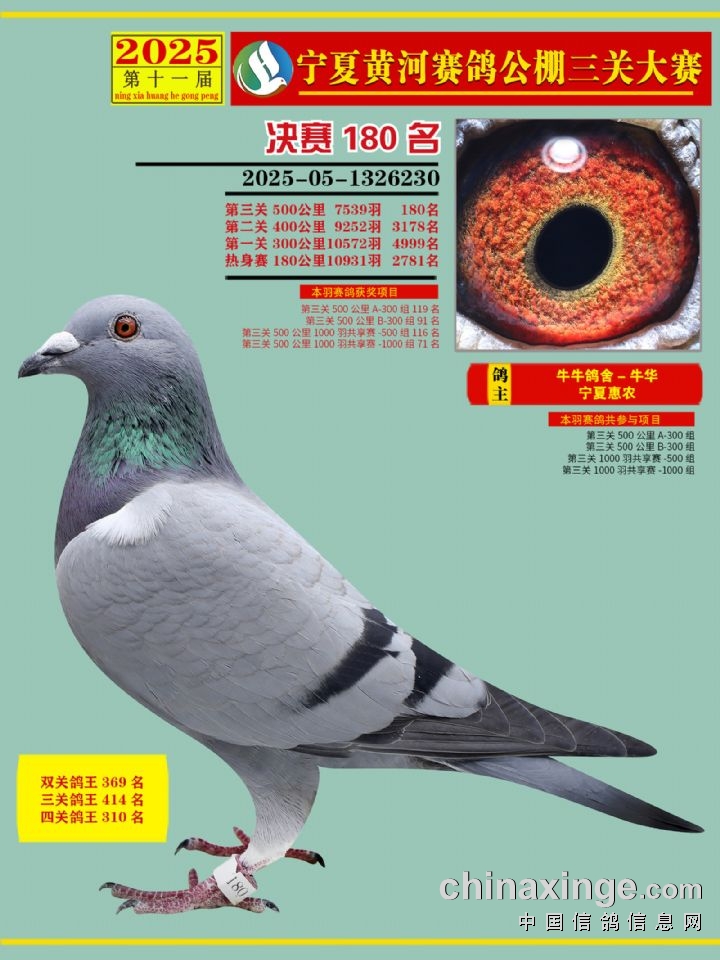 宁夏黄河赛鸽公棚第三关决赛500公里166-180名赏析