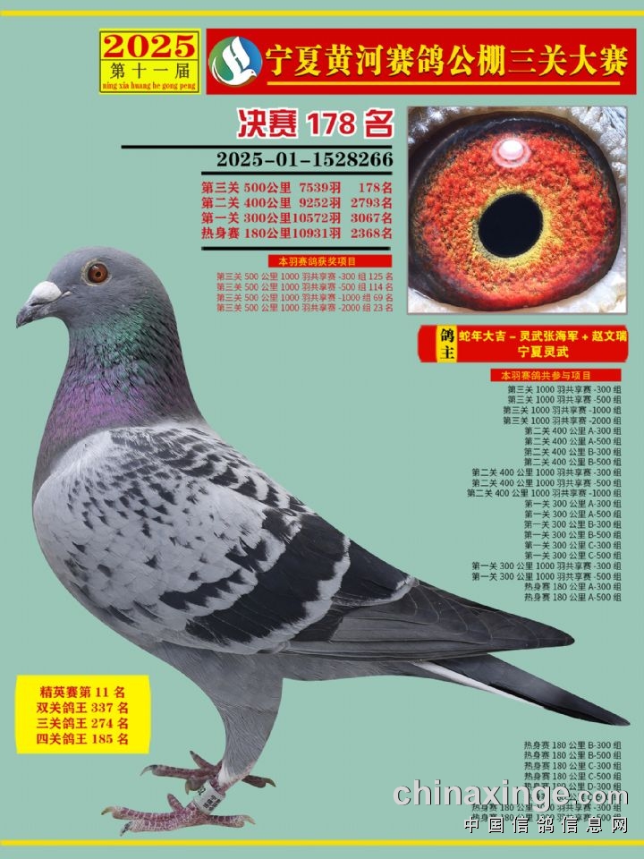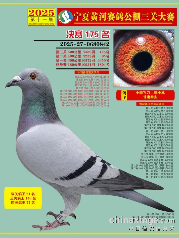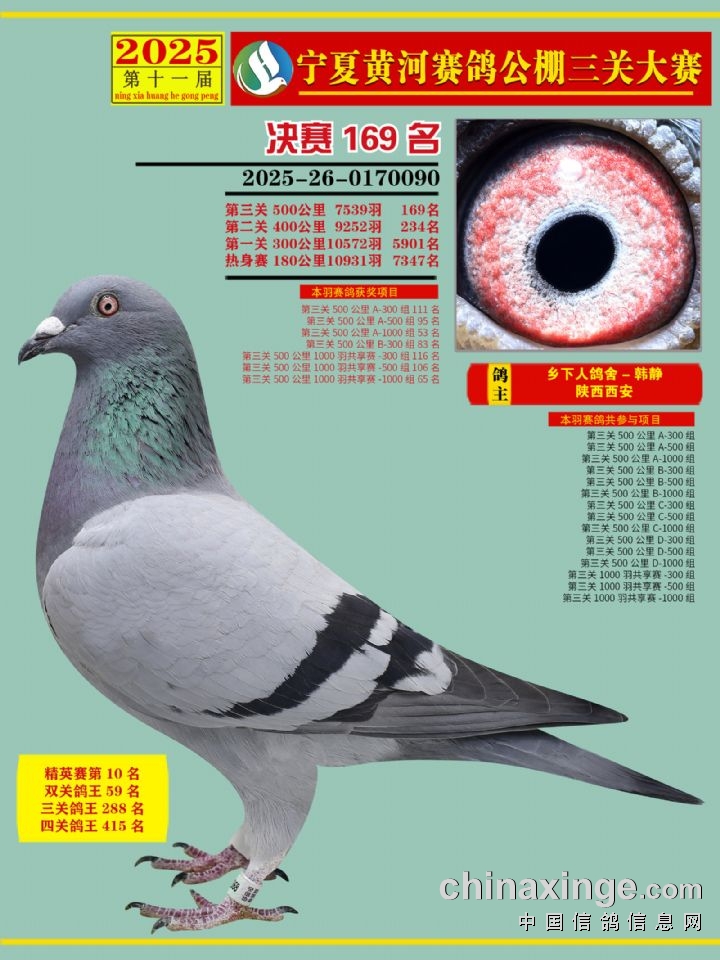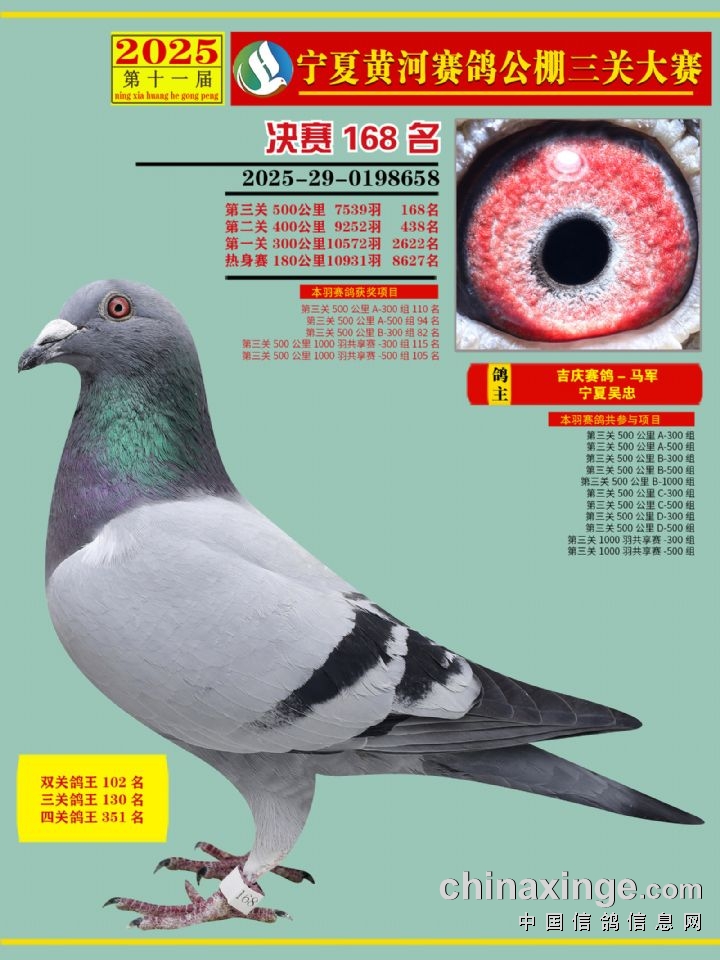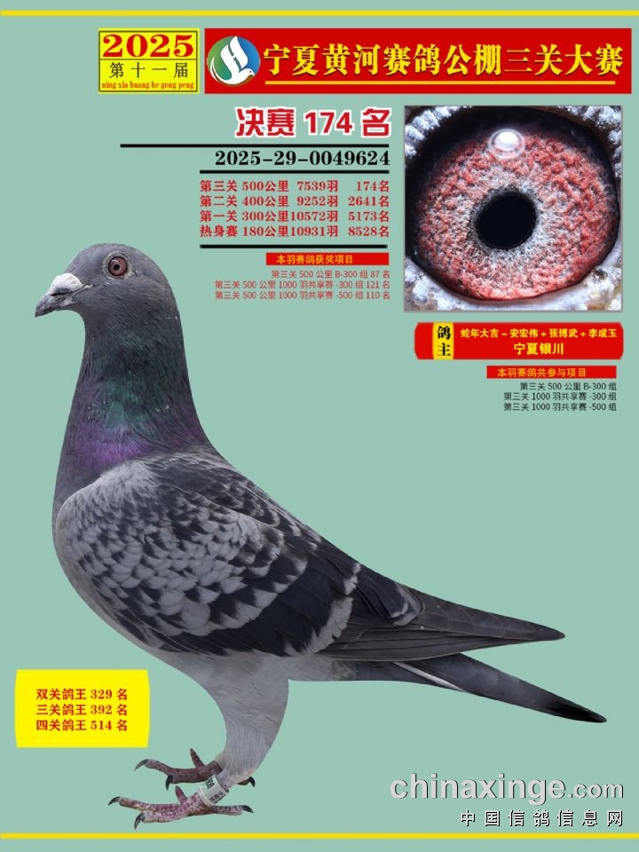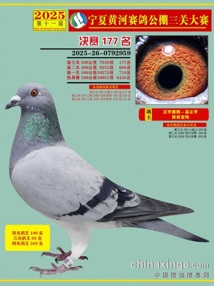 宁夏黄河赛鸽公棚第三关决赛500公里166-180名赏析