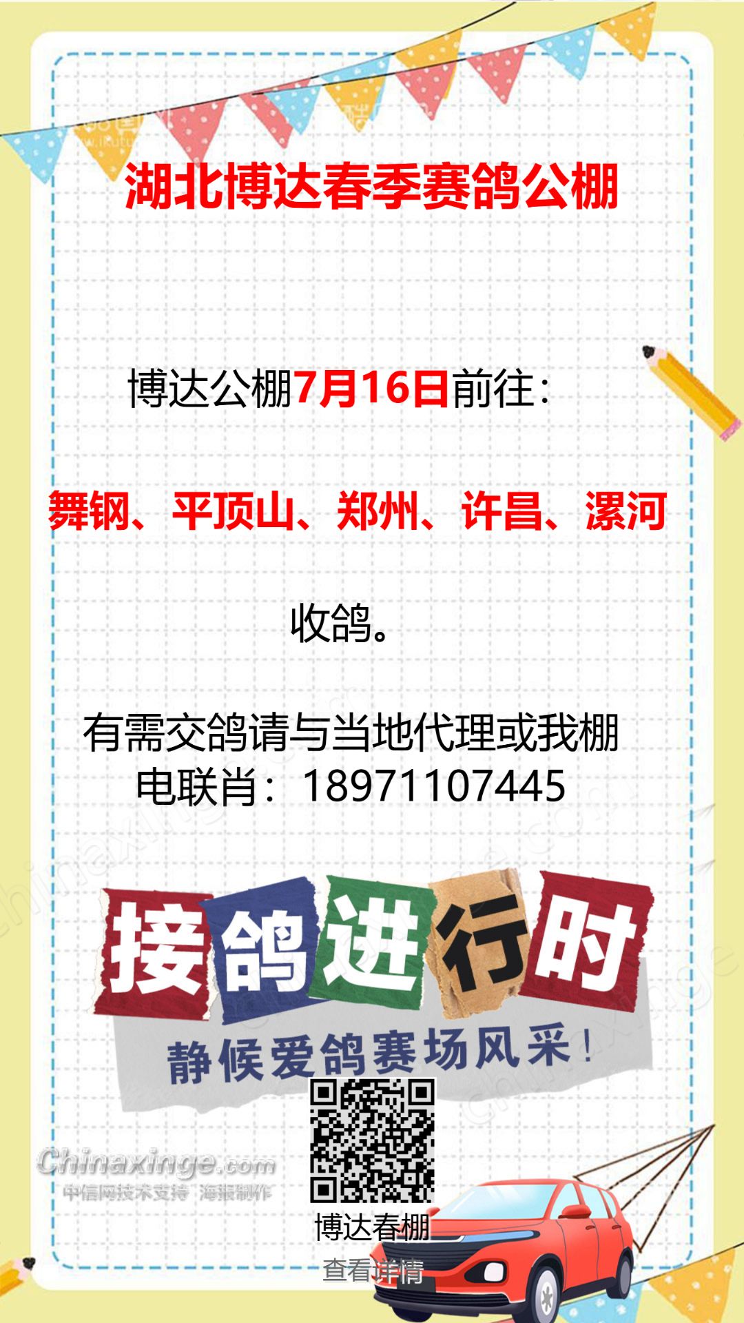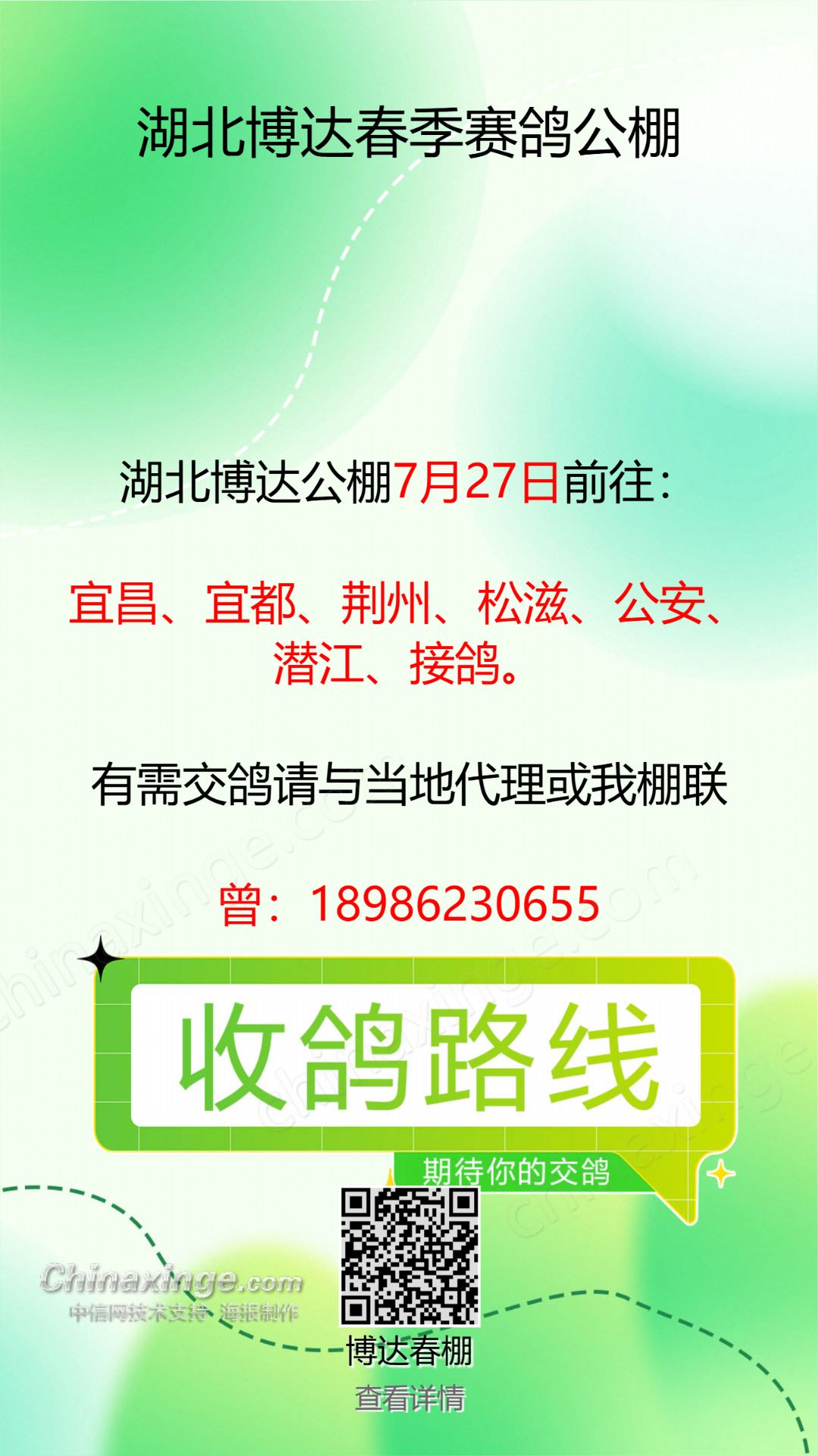 湖北博达赛鸽公棚(春棚)收鸽路线