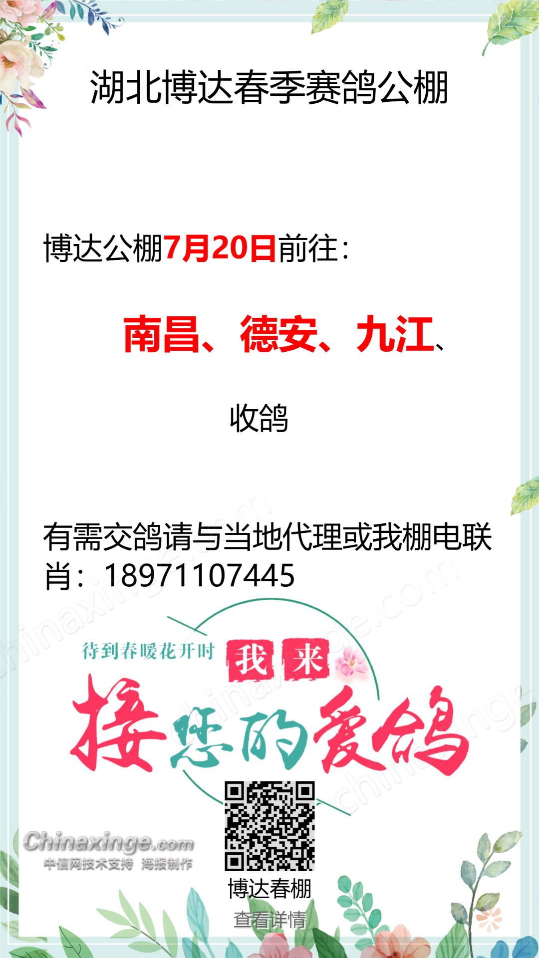 湖北博达春棚 7/20 南昌 德安 九江收鸽路线