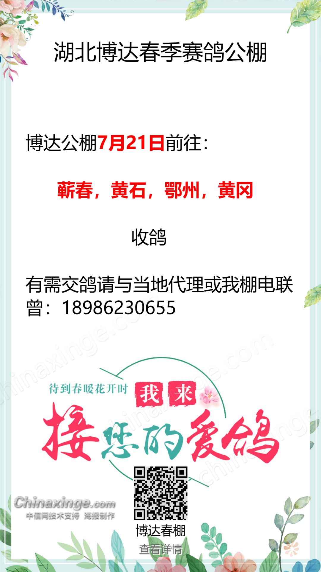 湖北博达春棚7月20日 蕲春 黄石 鄂州 黄冈 收鸽路线