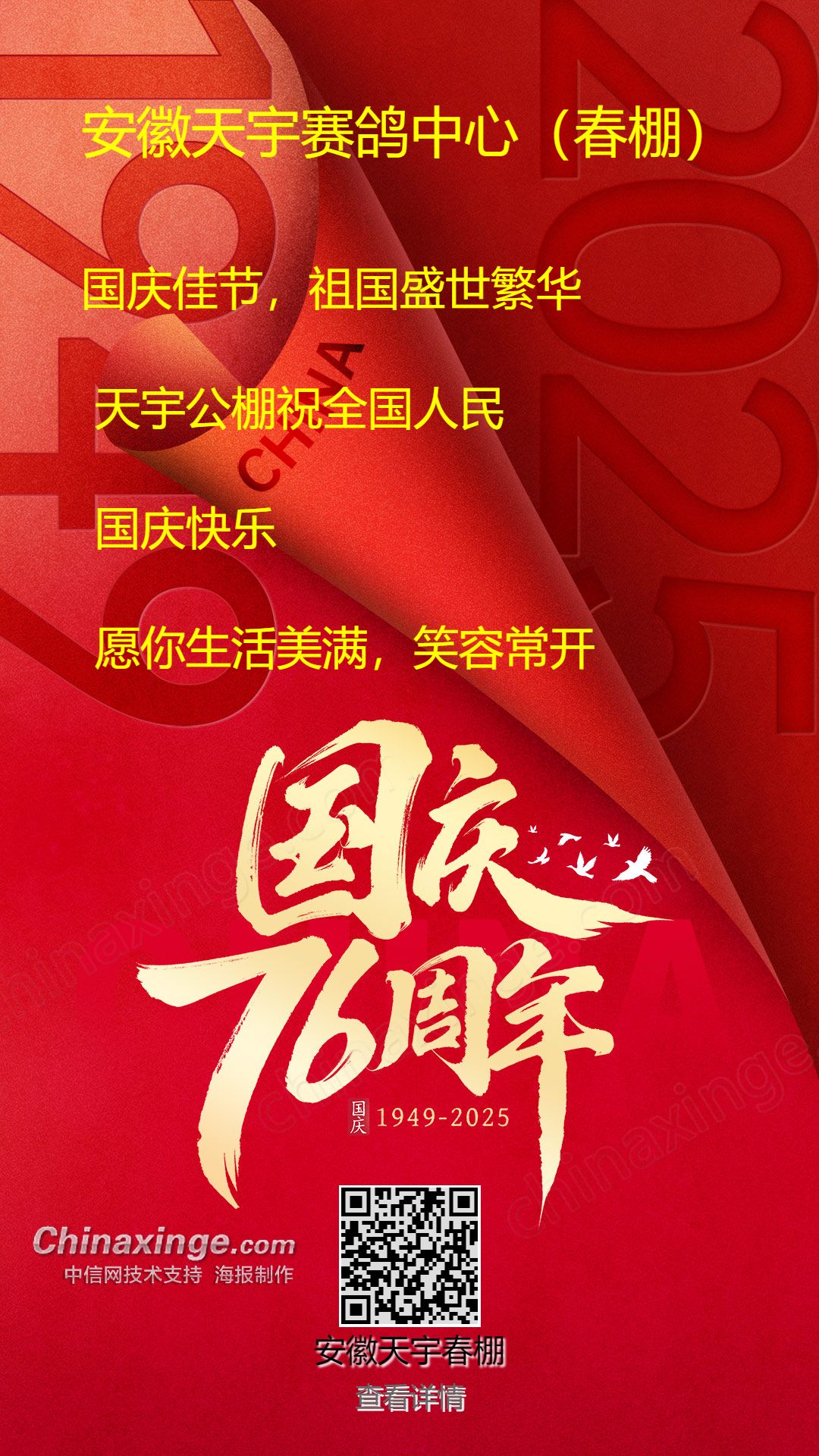安徽天宇:祝全国鸽友中秋团圆、国庆快乐