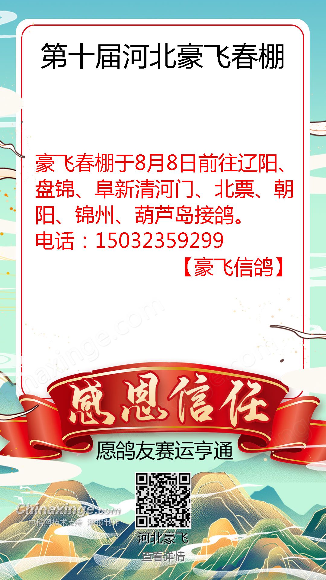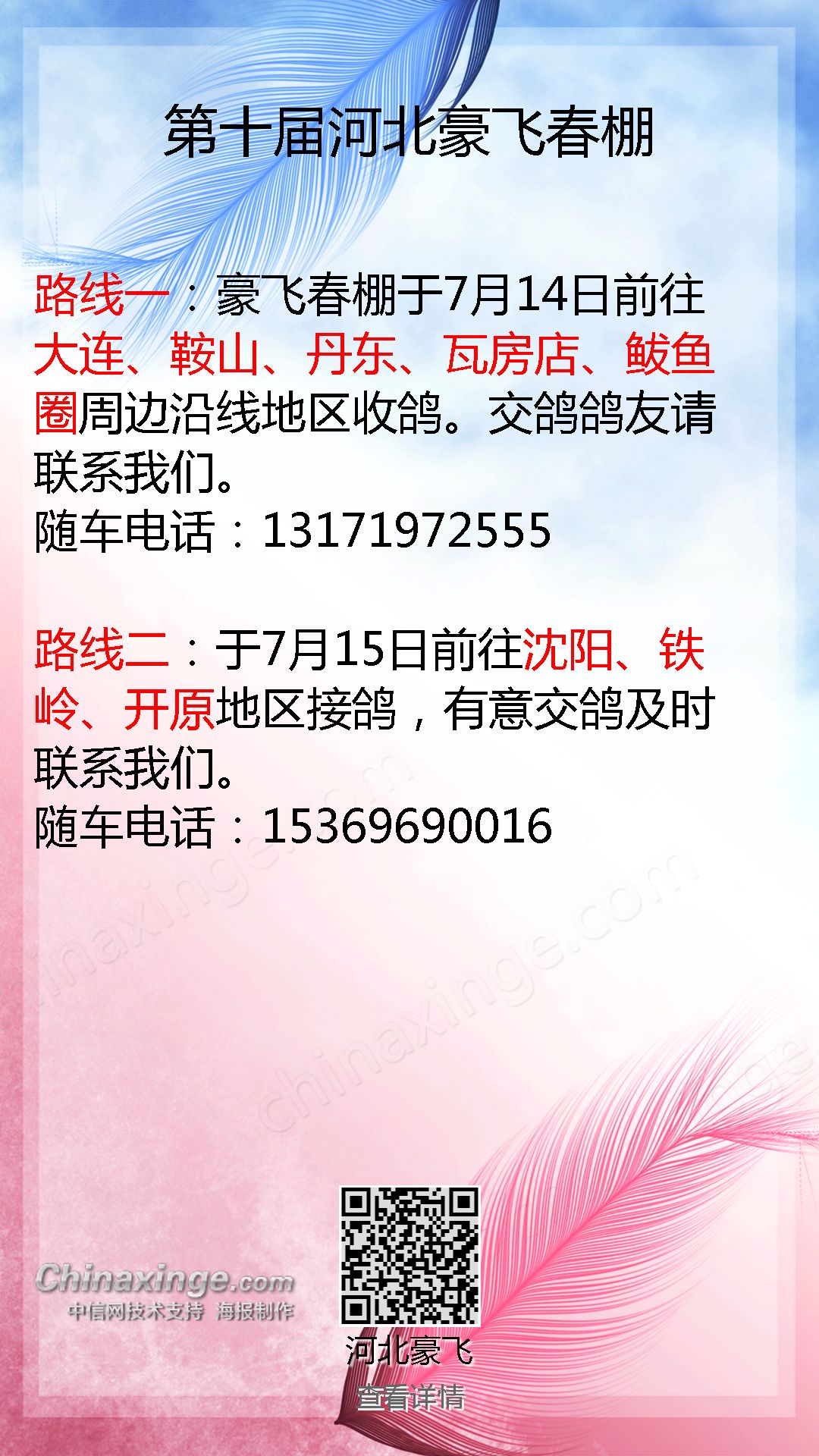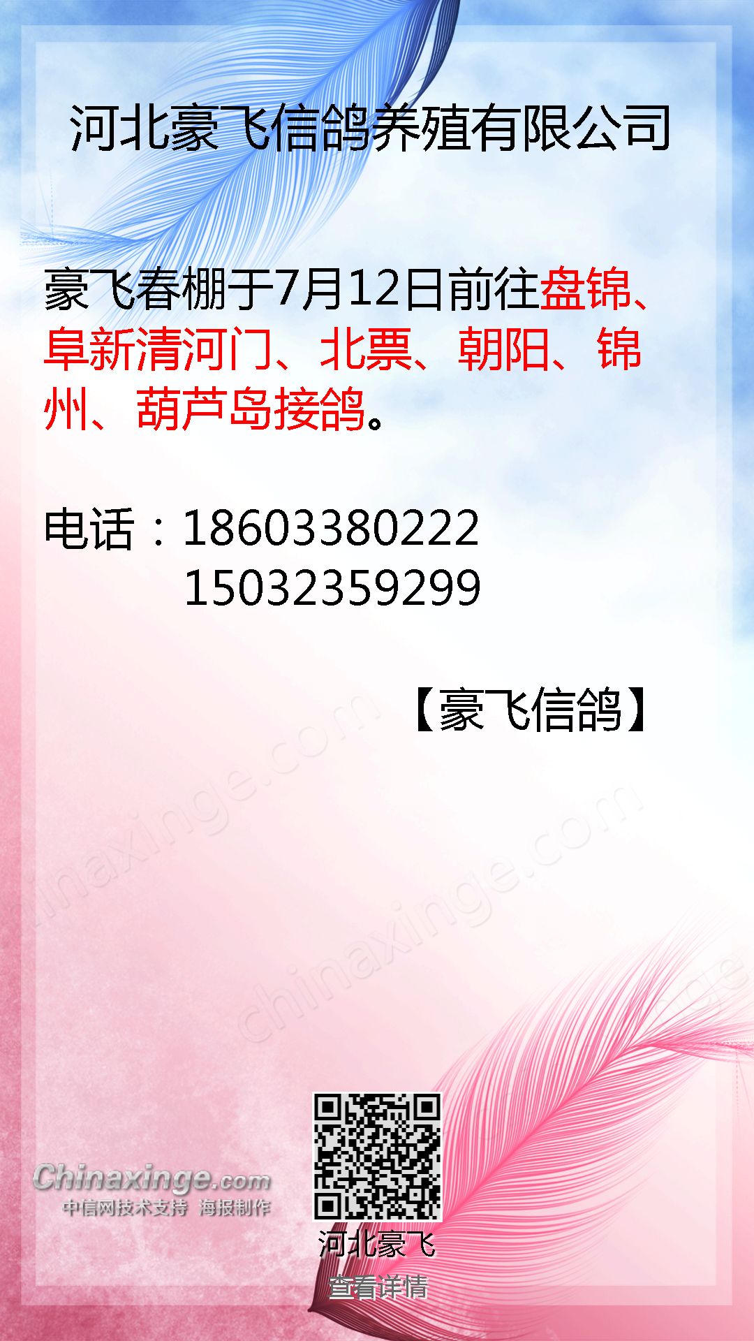 豪飞春棚每天接鸽路线(唐山-北京、秦皇岛-阜新)
