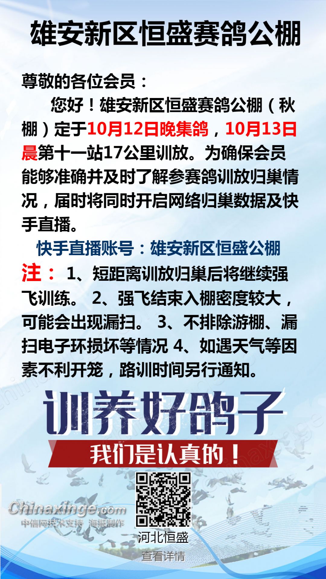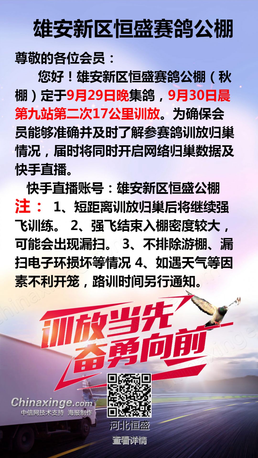 2025年雄安新区恒盛公棚(秋棚)第九站17公里训放公告