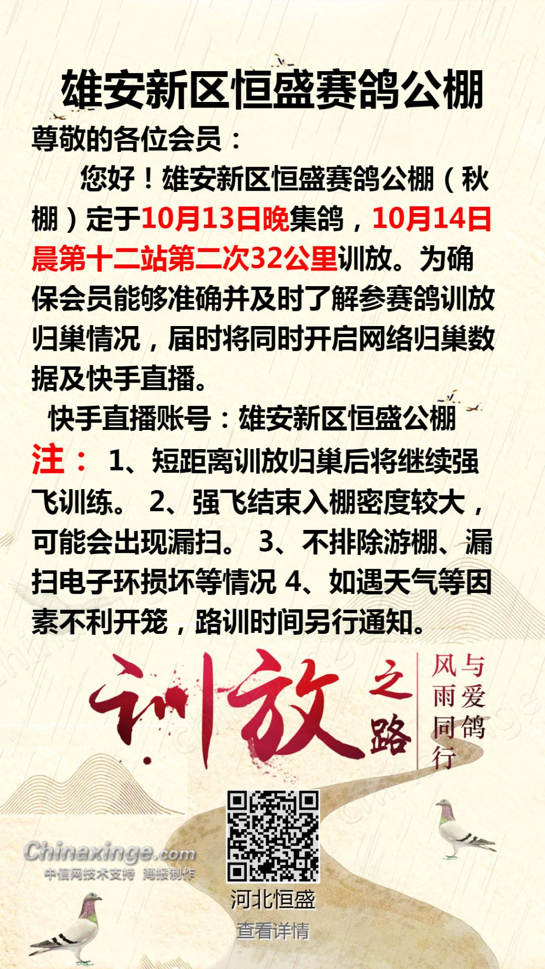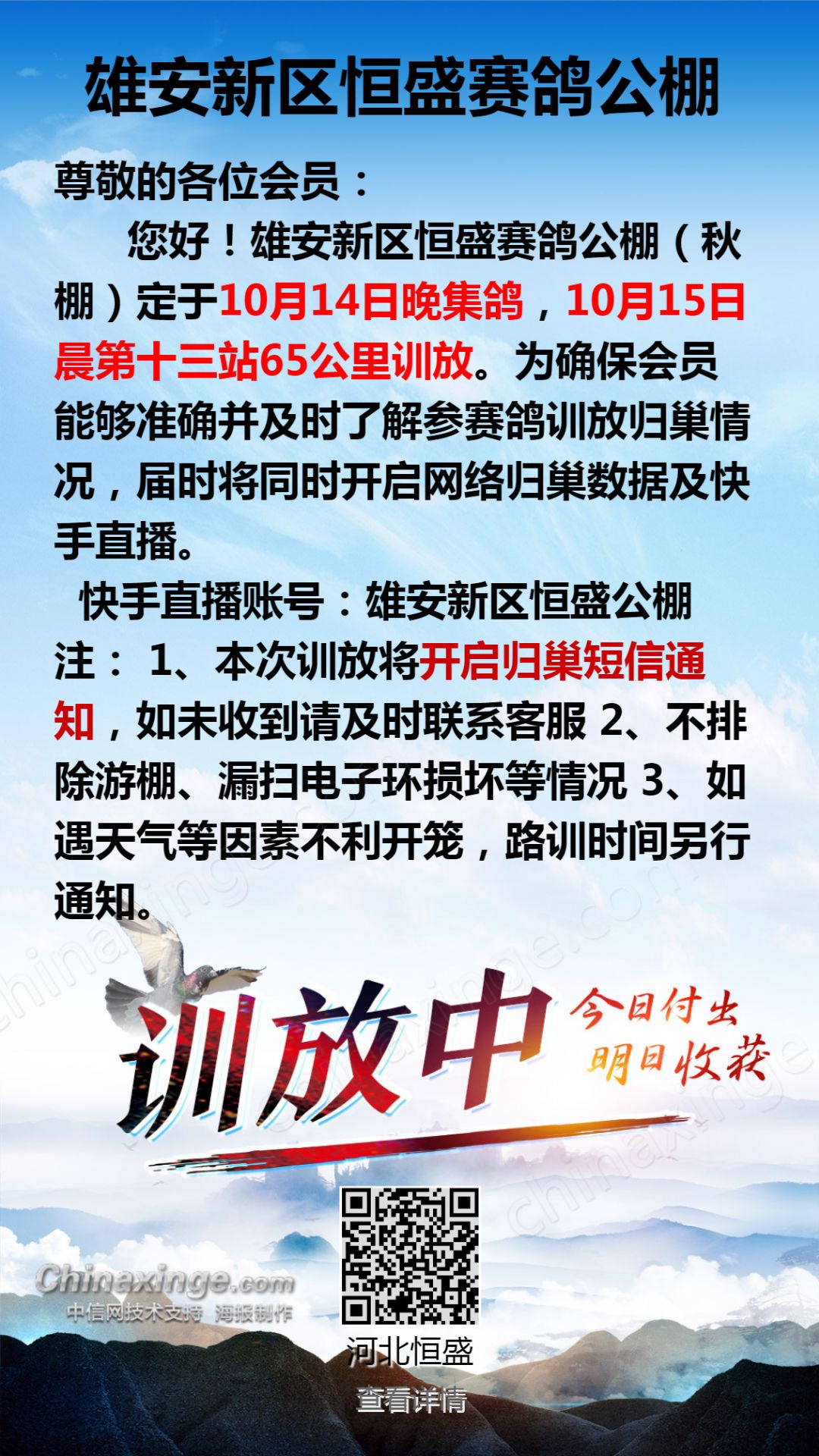 2025年雄安新区恒盛公棚(秋棚)第十三站65公里训放公告