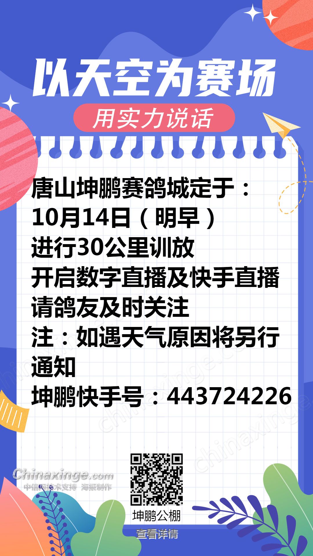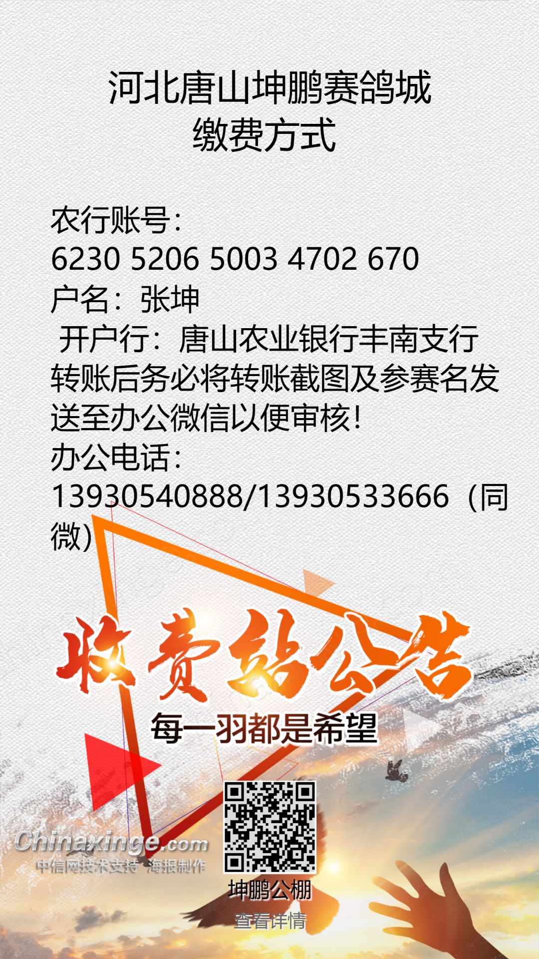 唐山坤鹏赛鸽城180公里热身赛比赛通知