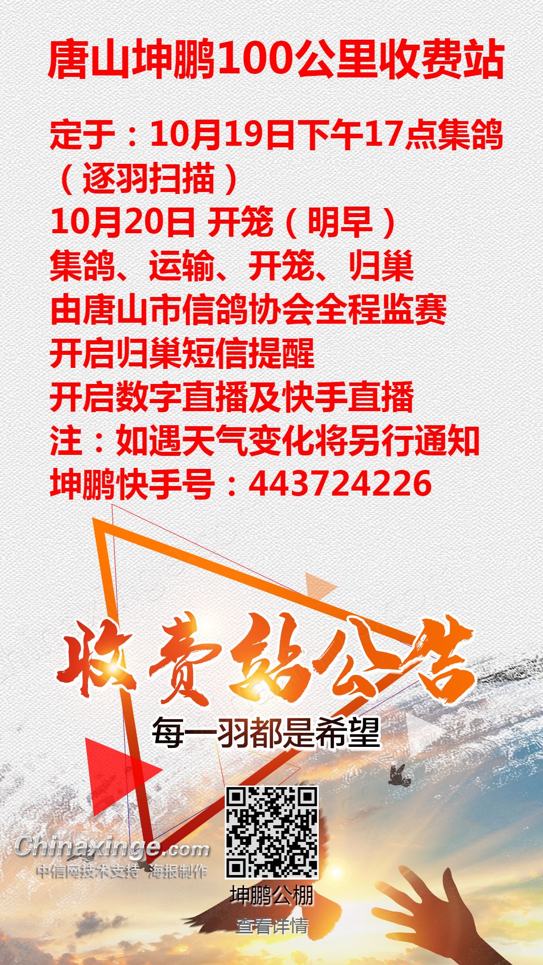 唐山坤鹏赛鸽城100公里收费站训放通知