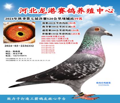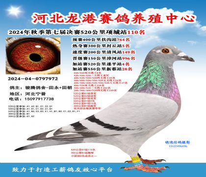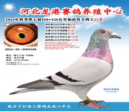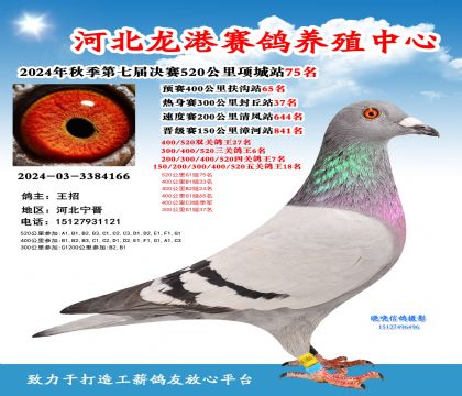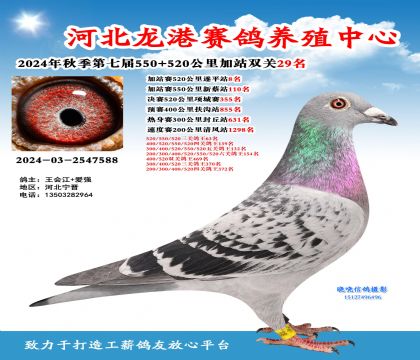 1626128 河北龙港加站双关鸽王20名(决赛127名) ¥500元 ¥1,200元 共 4 次出价